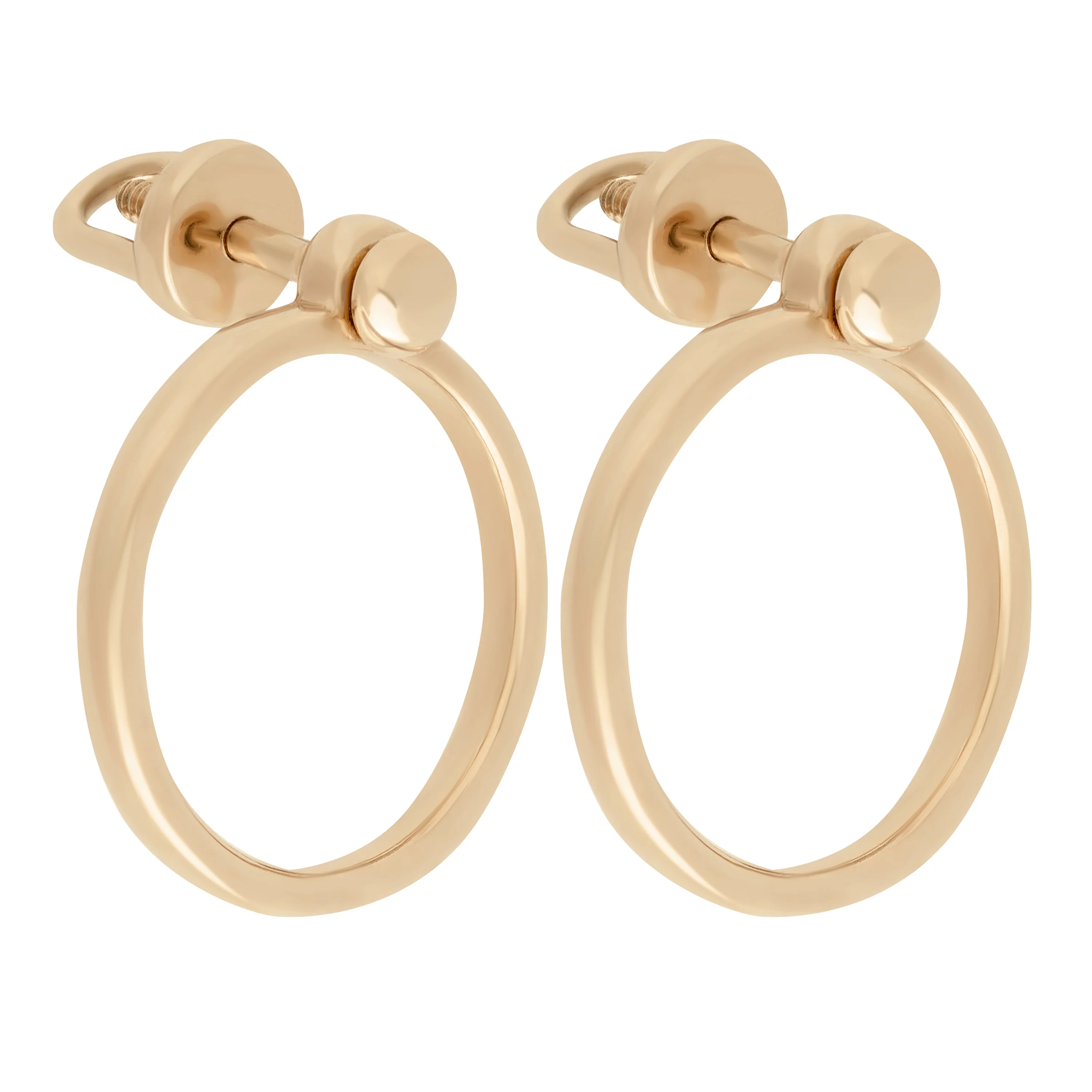 Сережки-гвоздики из красного золота "Квадрат" со съемной частью - 1617432