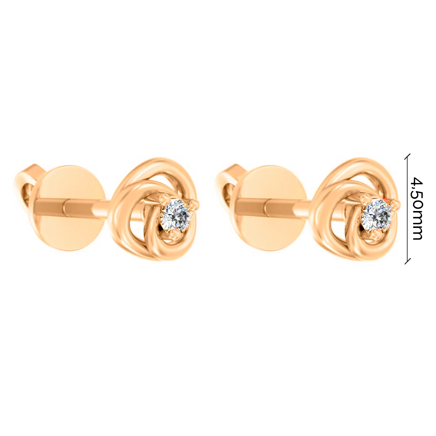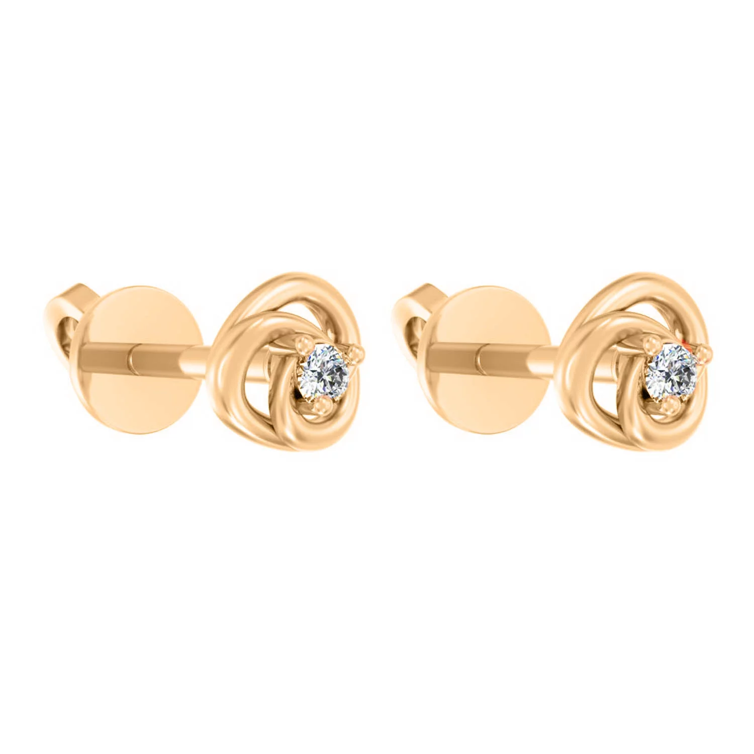 Сережки-гвоздики из красного золота в виде клевера с бриллиантами - 1771588