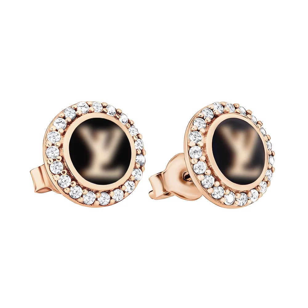 Серьги-гвоздики из красного золота с фианитами и эмалью - 1518586