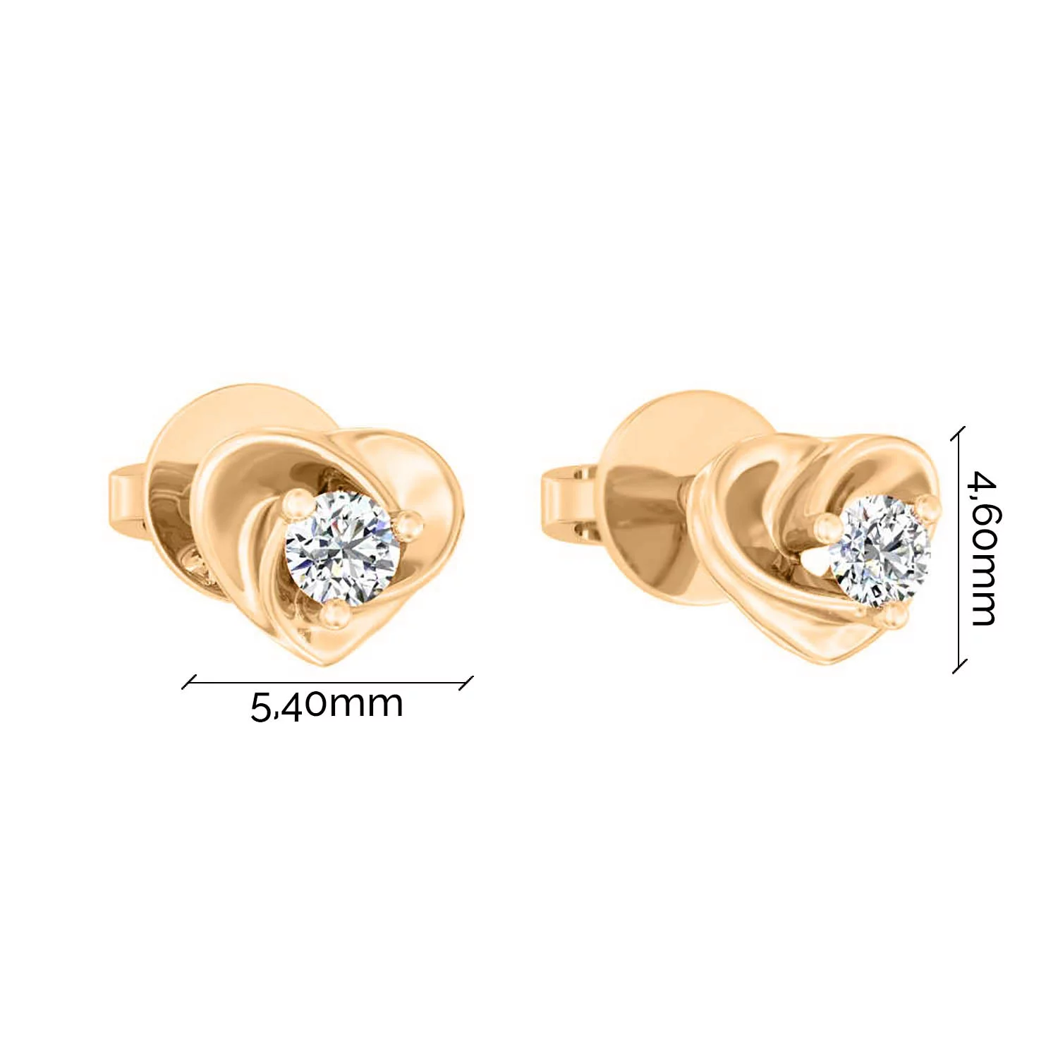 Серьги-гвоздики из красного золота с бриллиантом в стиле минимализм - 1818555