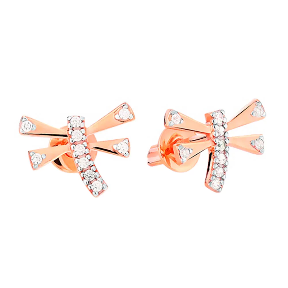 Серьги-гвоздики из красного золота Стрекоза с фианитами - 1504991