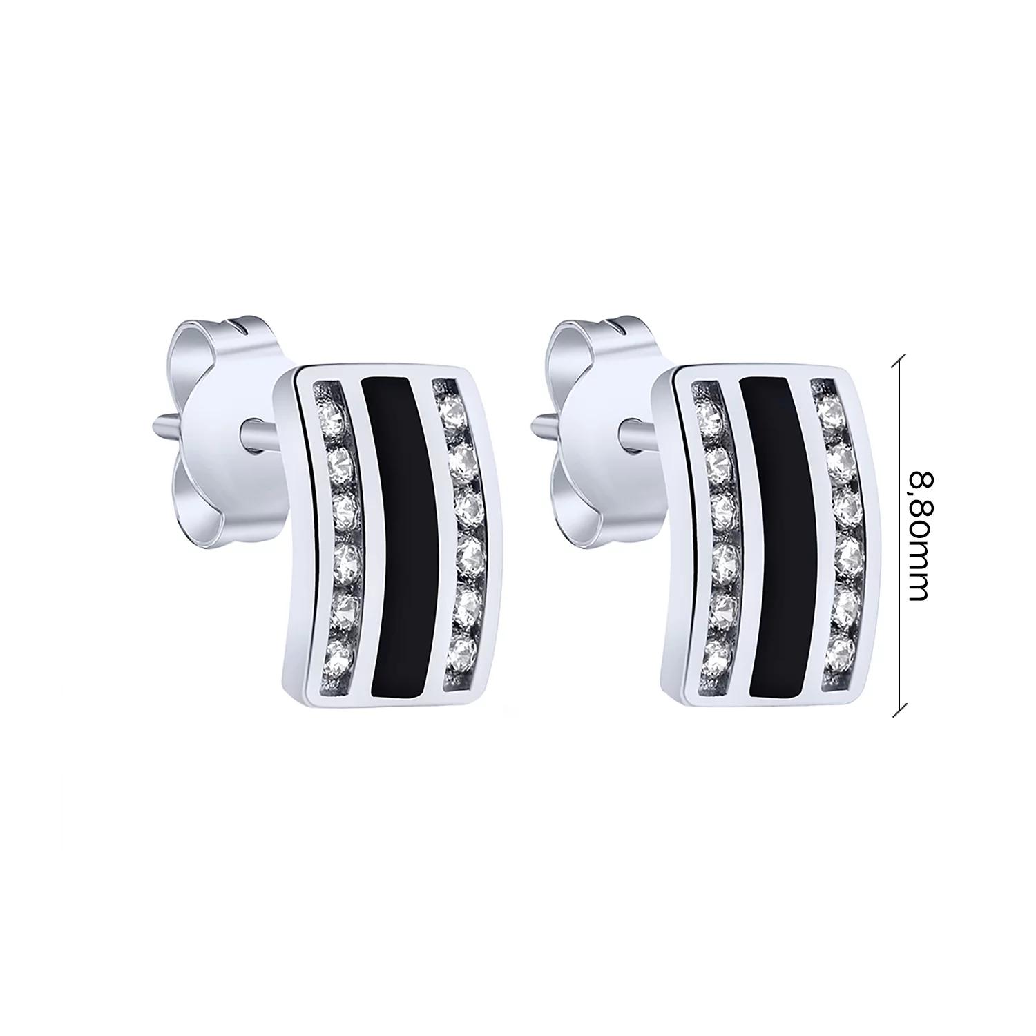 Серебряные стильные сережки-пусеты "Клевер" с ониксом и фианитами - 1940309