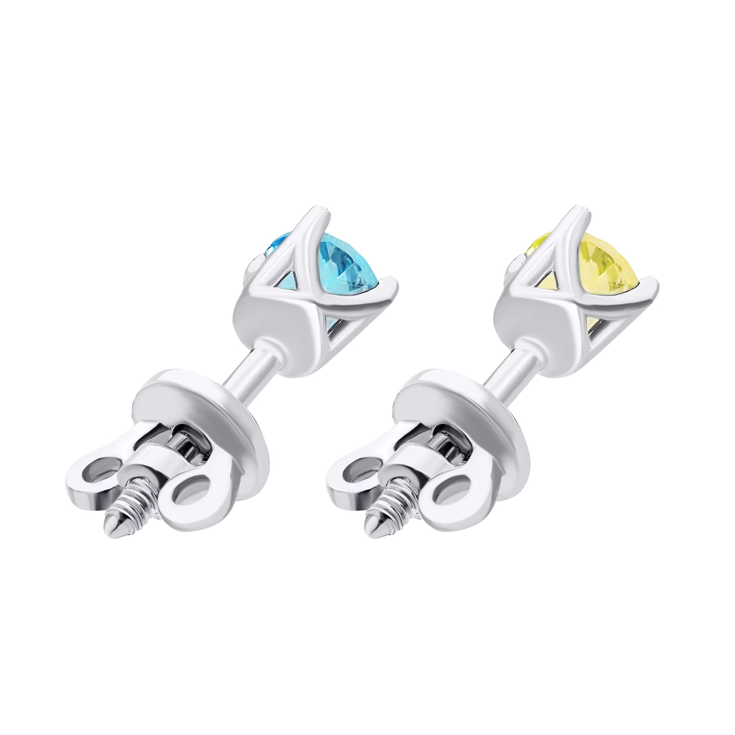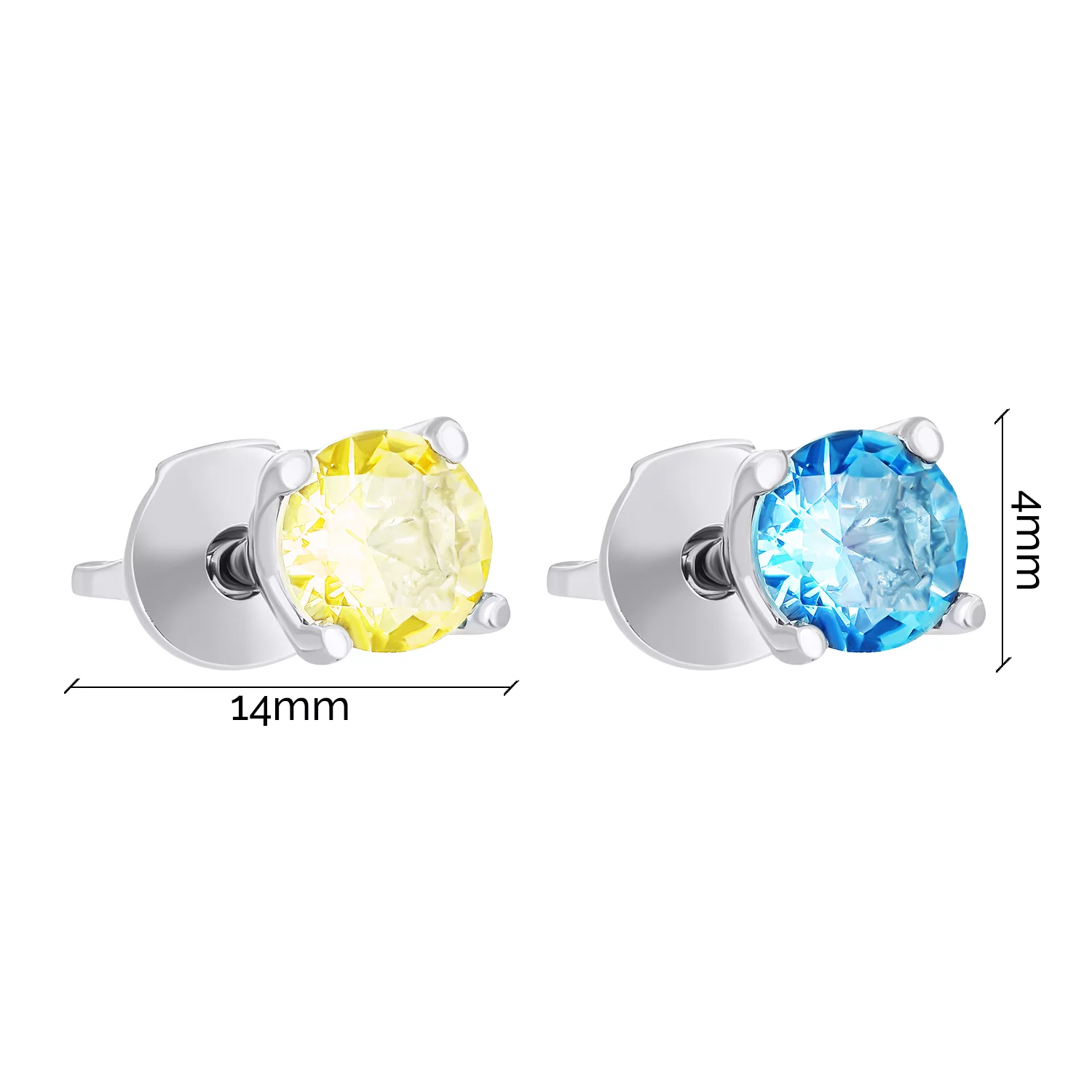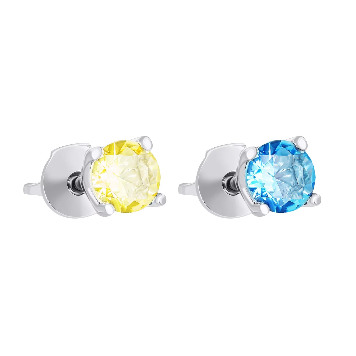 Серьги-гвоздики из серебра с синими и желтыми фианитами - 1548730