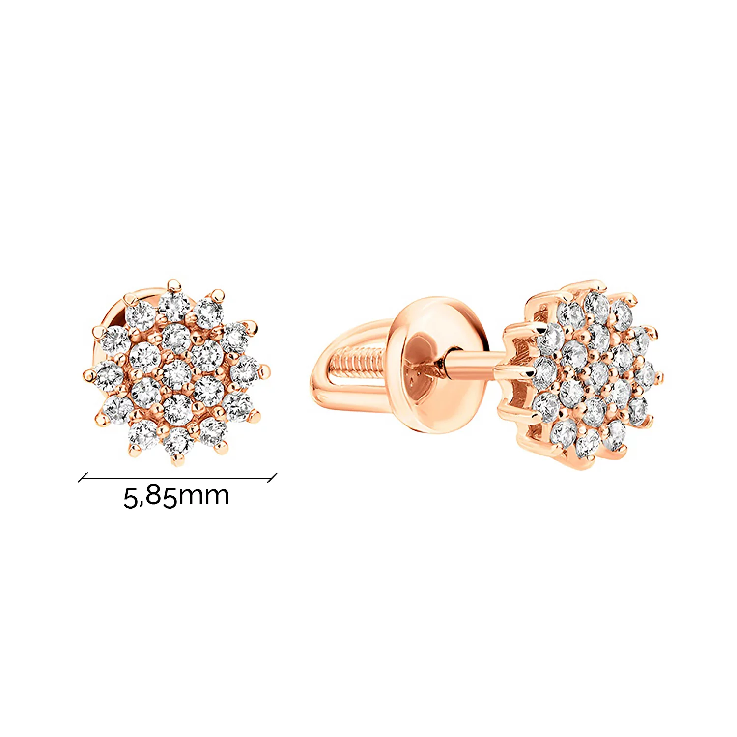 Серьги-гвоздики "Цветочек" из красного золота с россыпью бриллиантов - 1532353