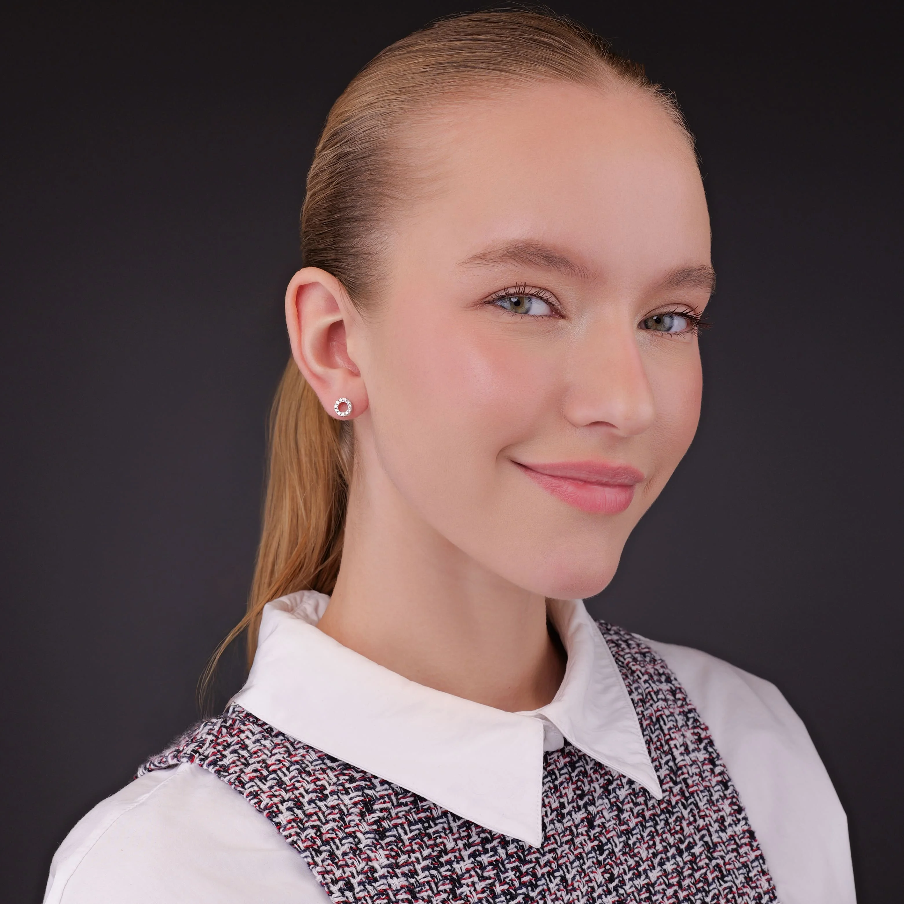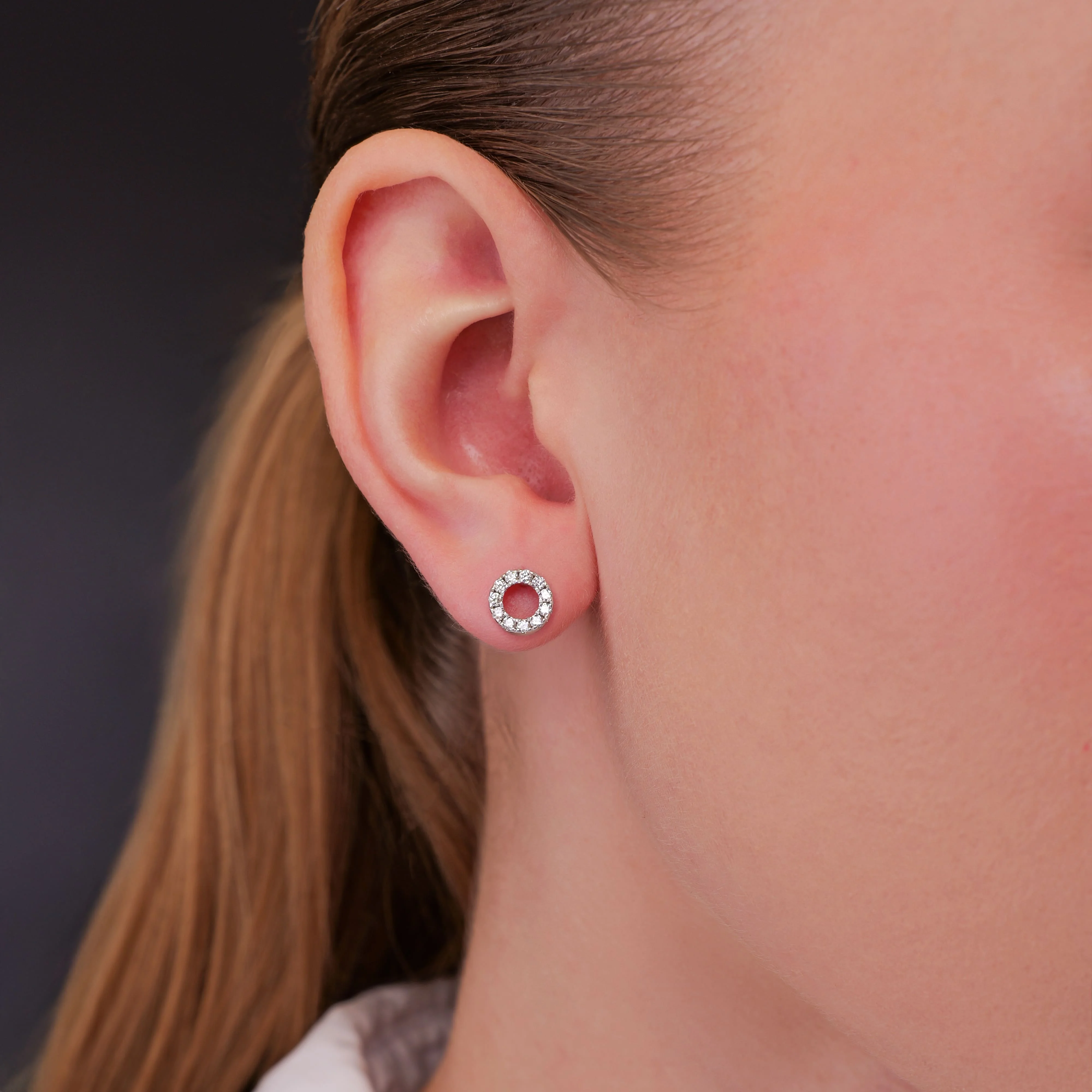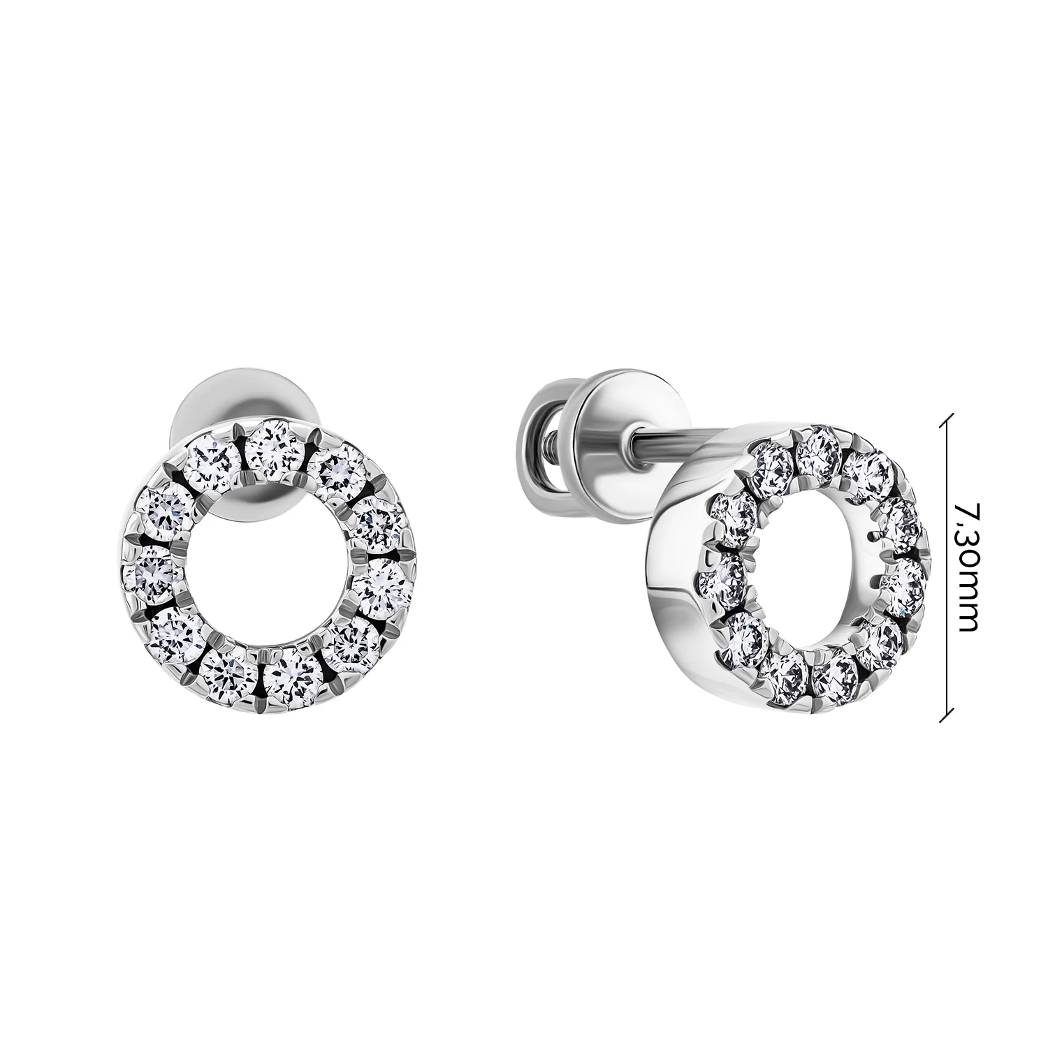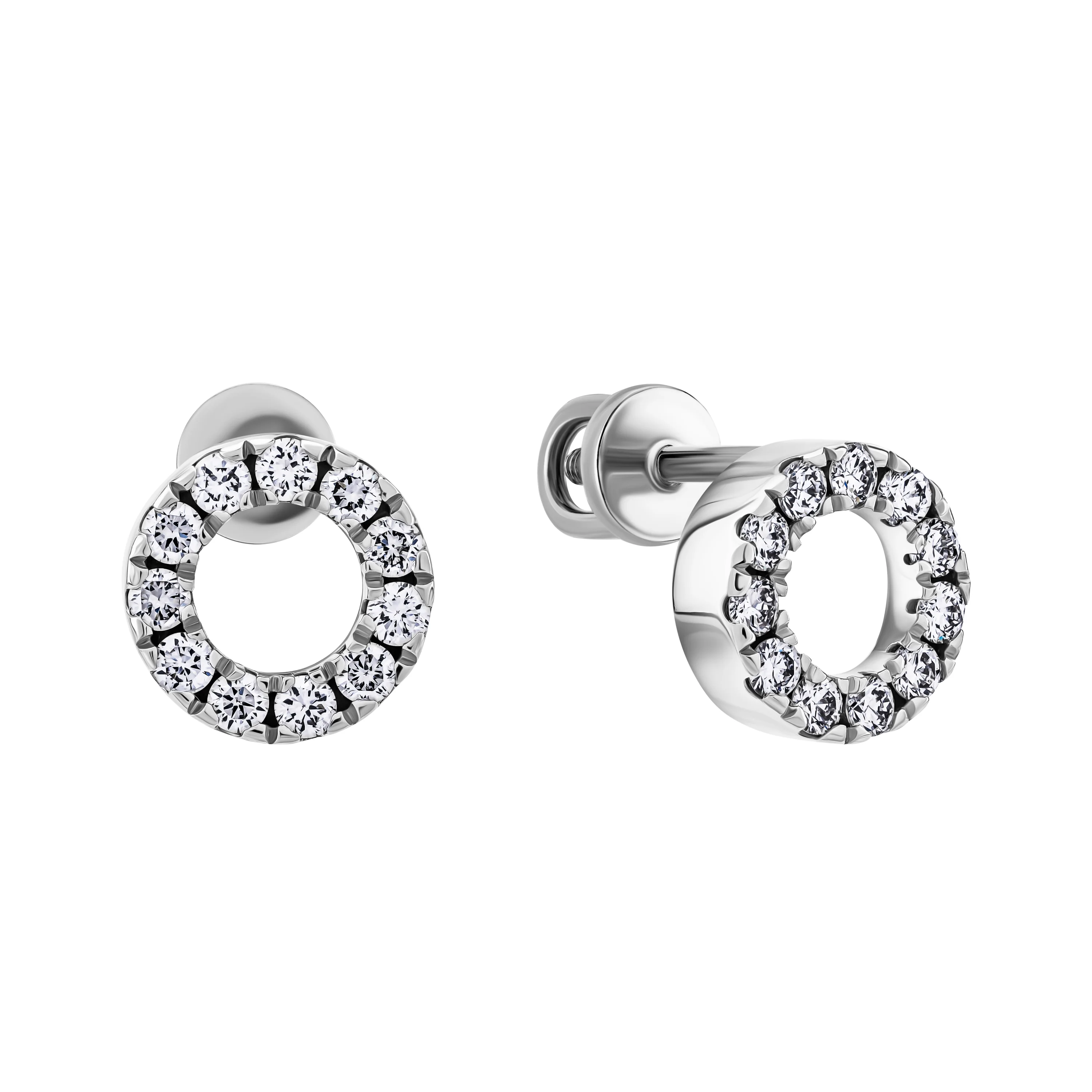 Серьги-гвоздики "Круг" в белом золоте с бриллиантами - 1987559