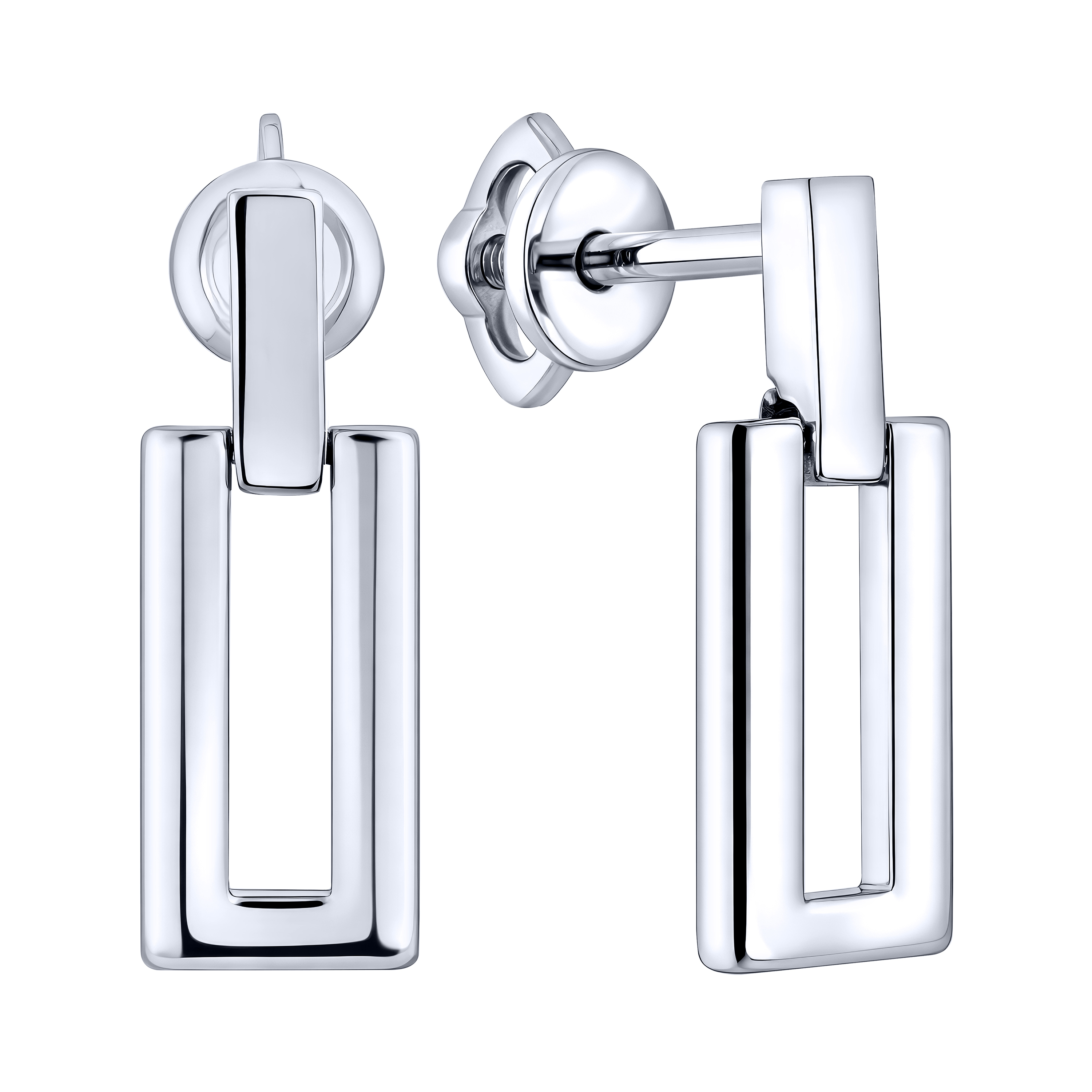 Серьги-гвоздики "Прямоугольник" из серебра - 2193409