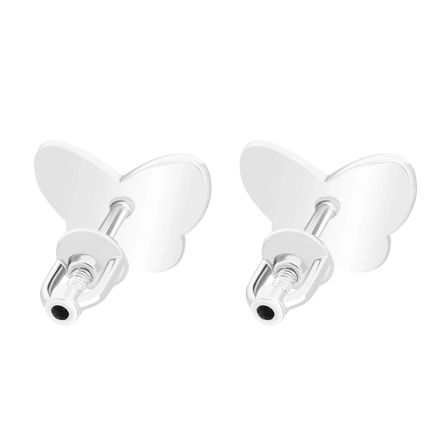 Элегантные серебряные сережки-пусеты "Бабочка" с россыпью фианитов - 1938063