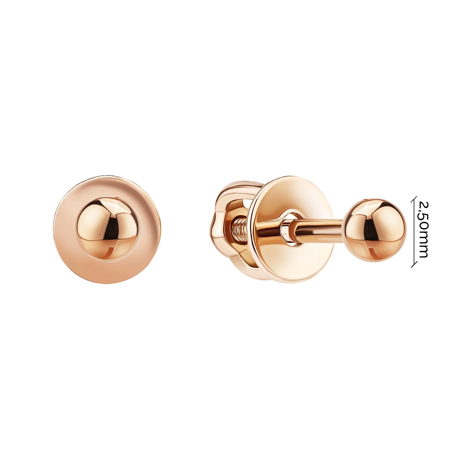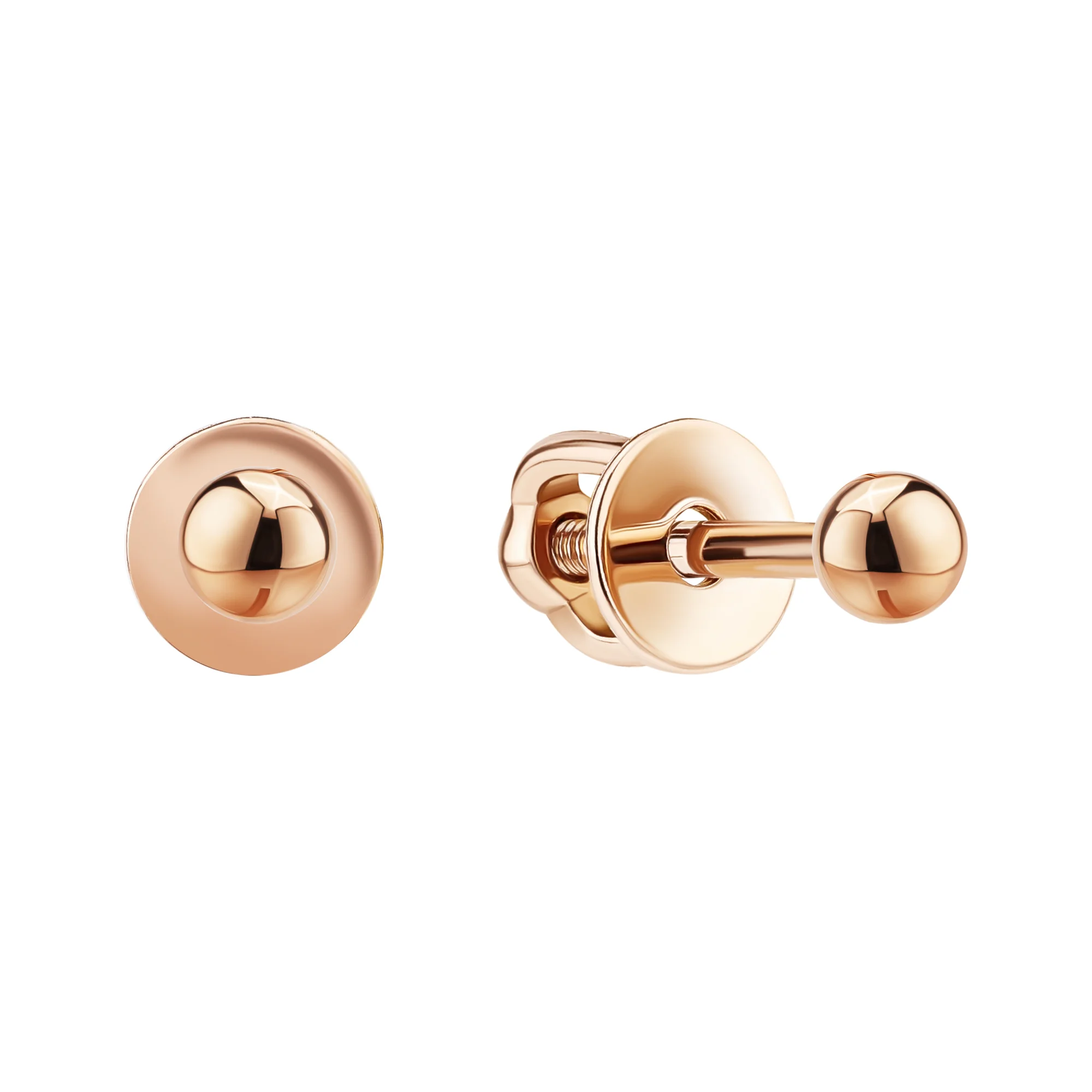 Серьги-гвоздики "Шарики" из красного золота в минималистичном стиле - 2092625