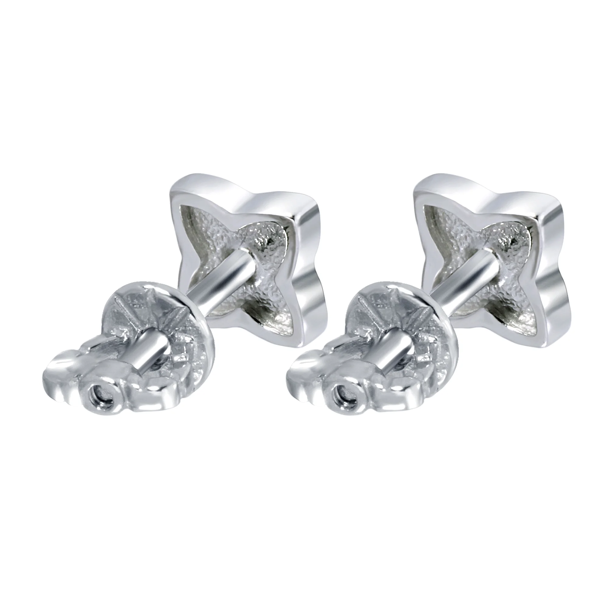 Сережки-гвоздики "Квадрат" в красном золоте с эмалью и фианитами - 1958569