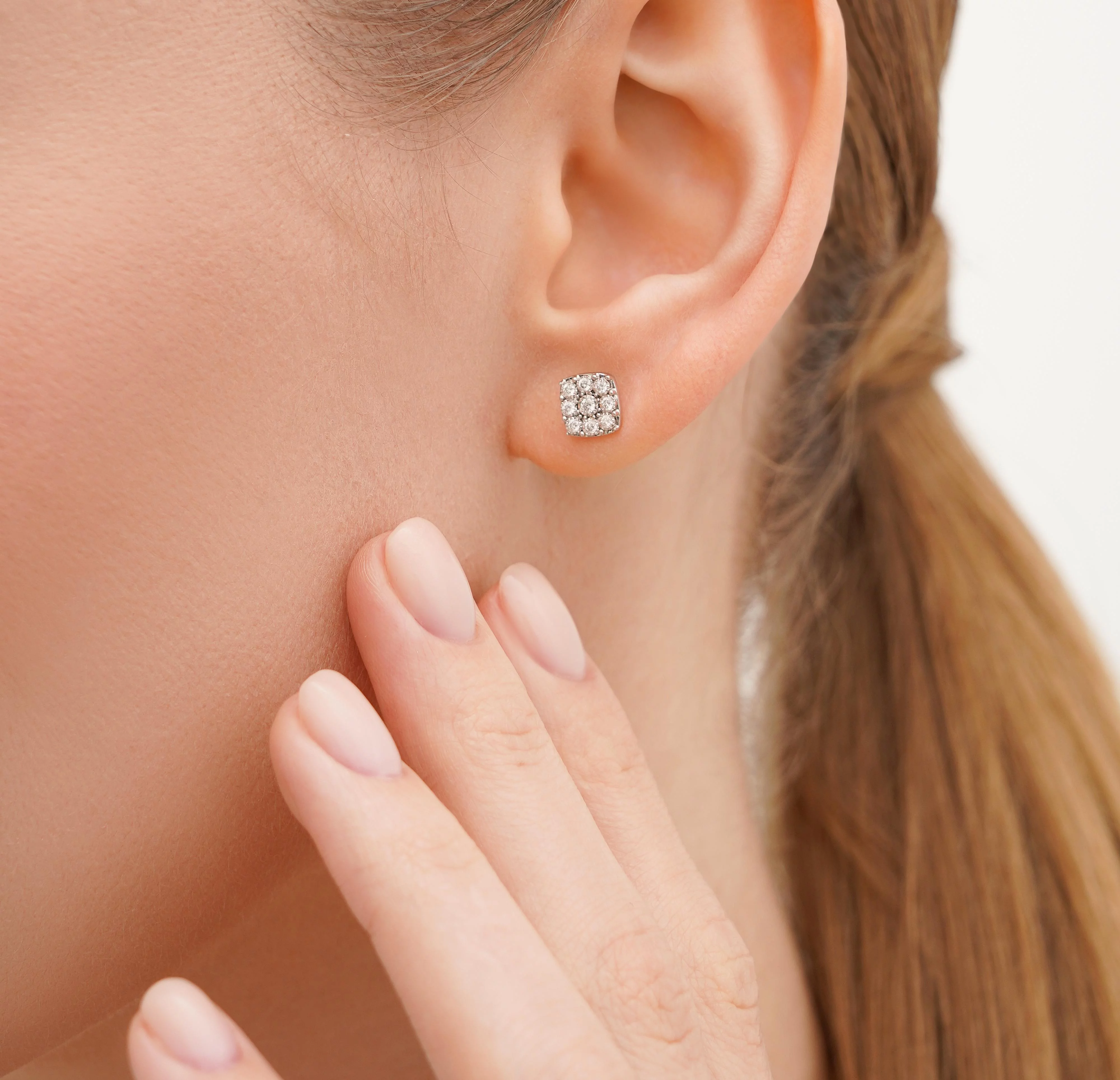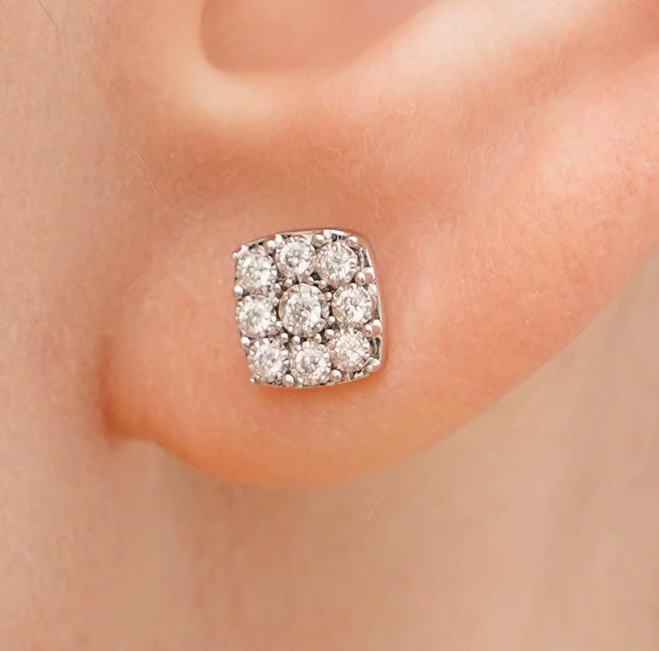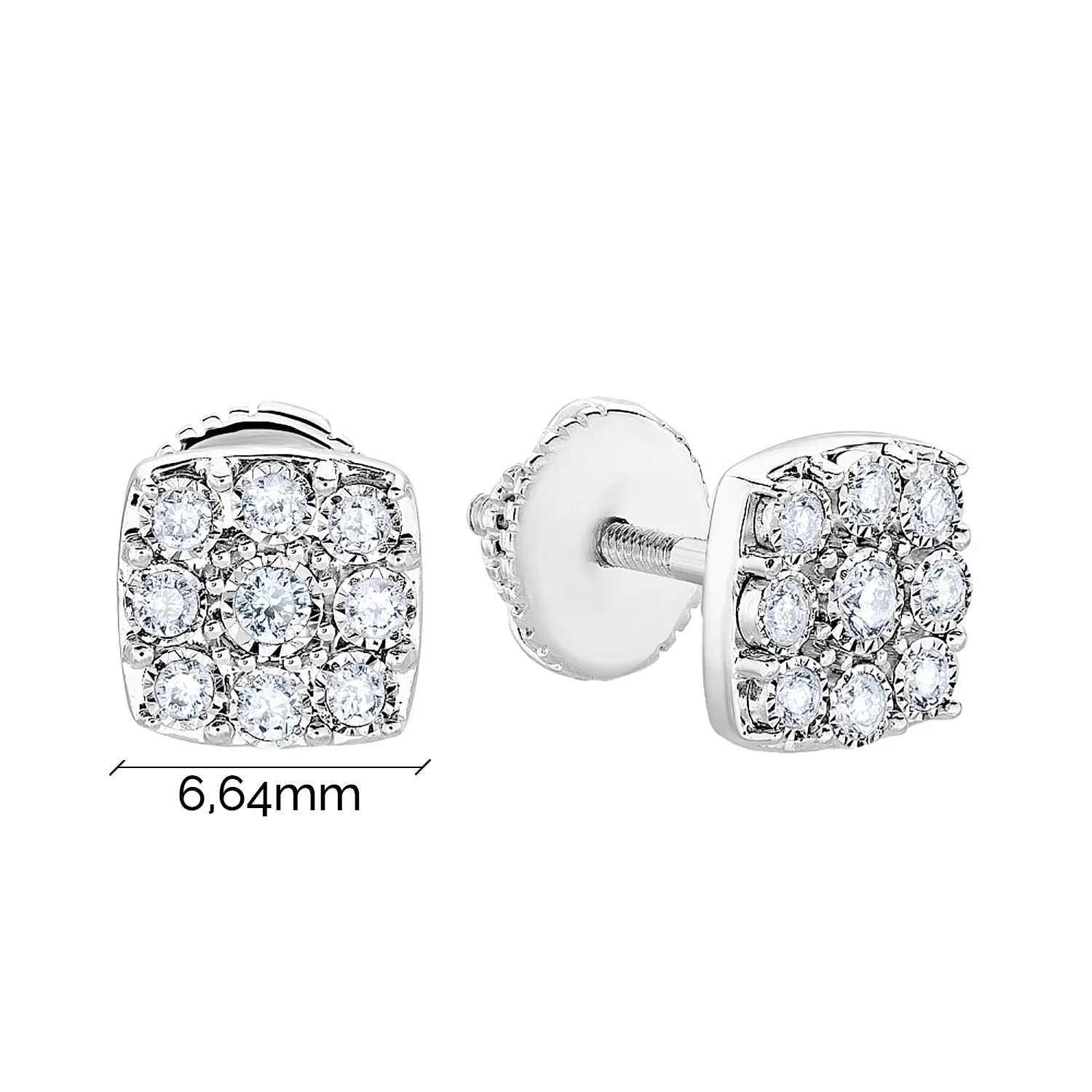 Экстравагантные сережки в форме квадрата из белого золота с бриллиантами - 1876575