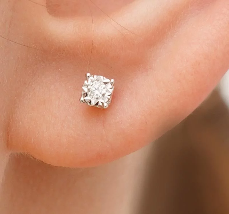 Серьги-гвоздики из белого белого с бриллиантом в стиле минимализм - 1818556