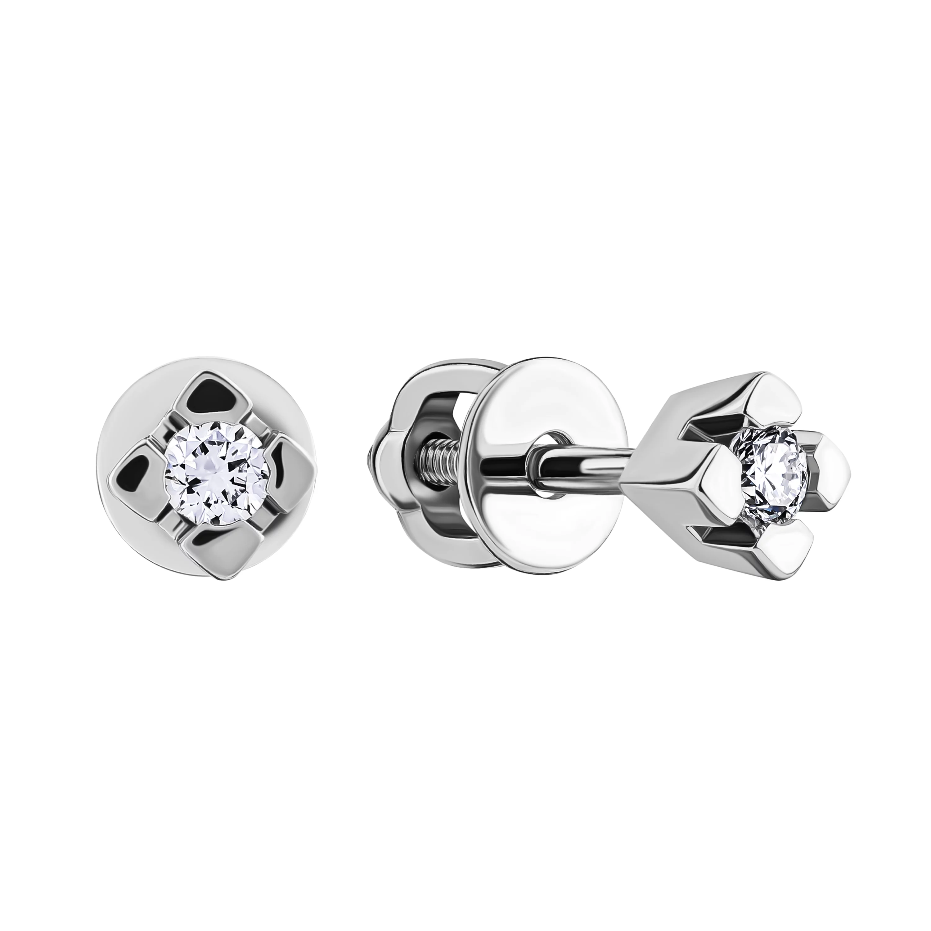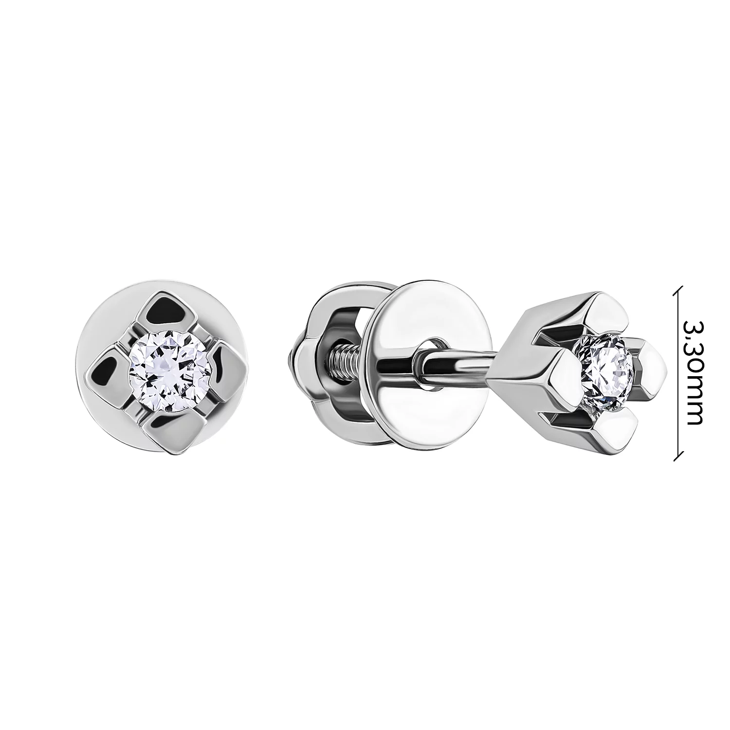 Серьги-гвоздики из белого белого с бриллиантом в стиле минимализм - 1818556