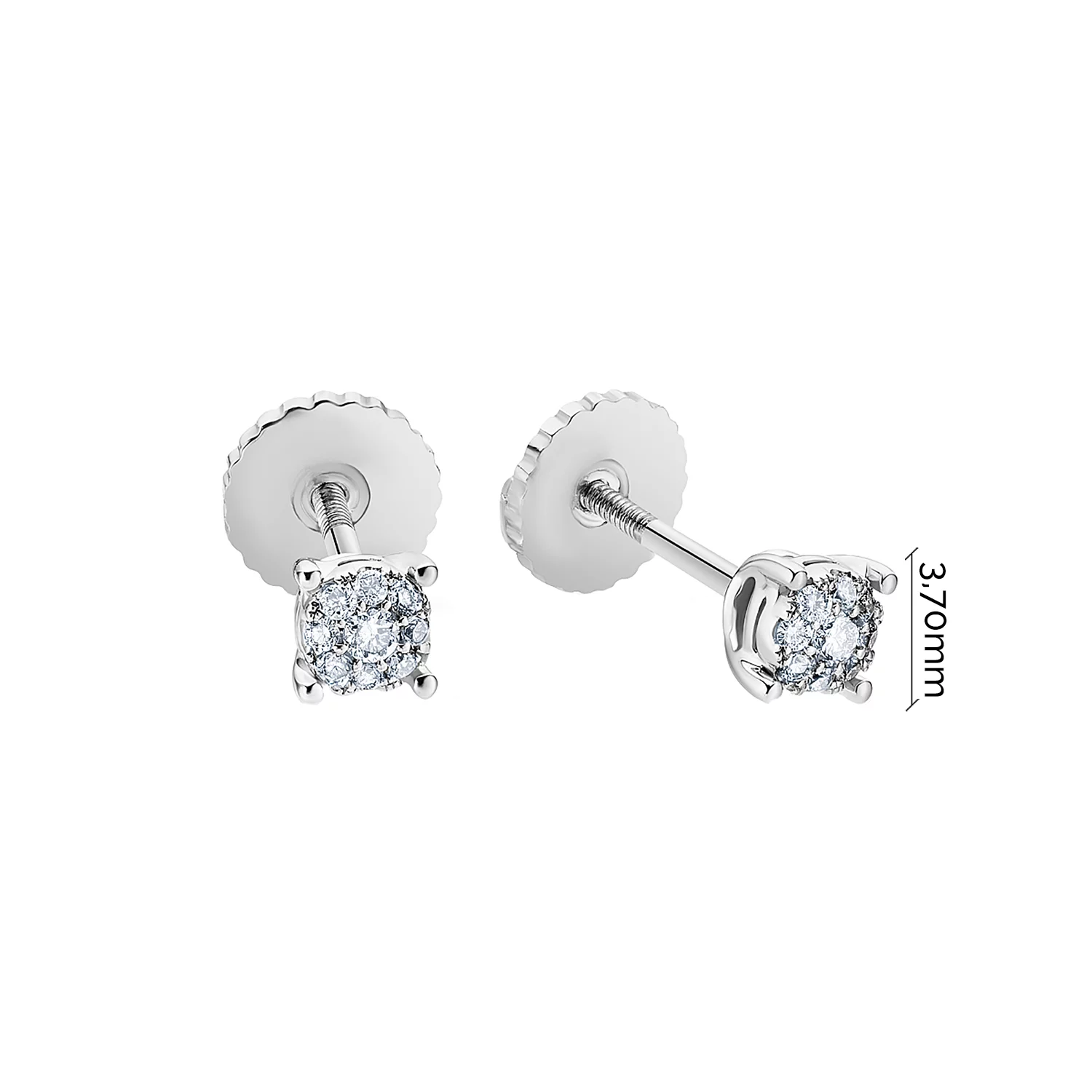 Круглые сережки-гвоздики с россыпью бриллиантов из белого золота - 1738517