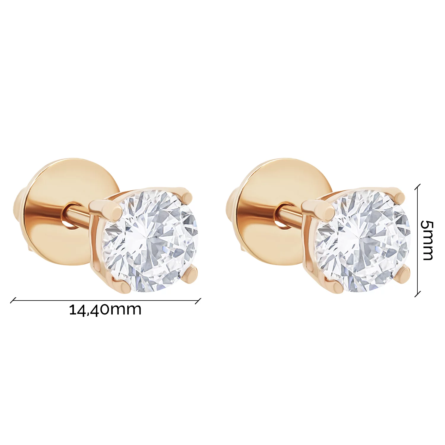 Сережки-гвоздики "Сердце" в романтичном стиле из красного золота и с фианитами - 1859350