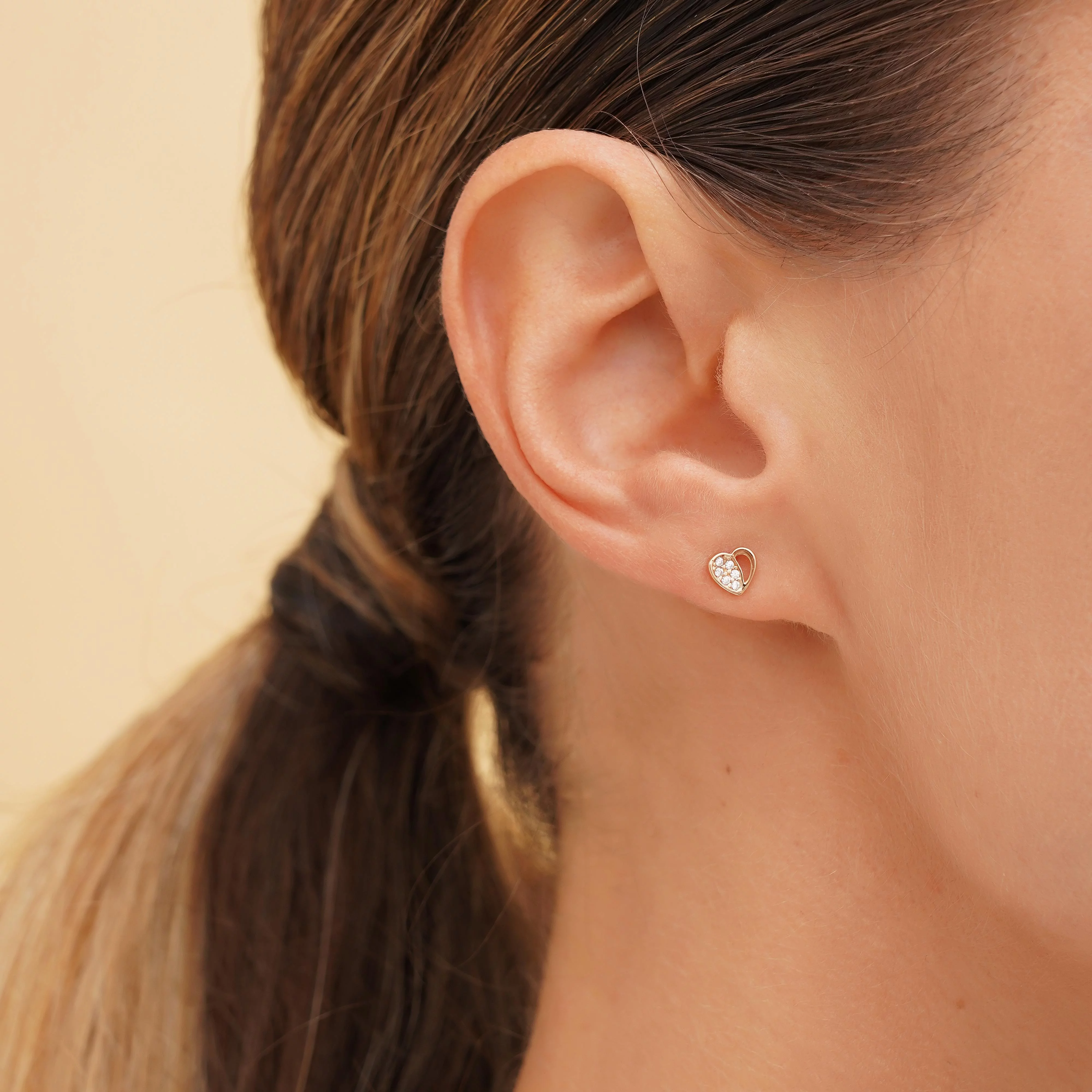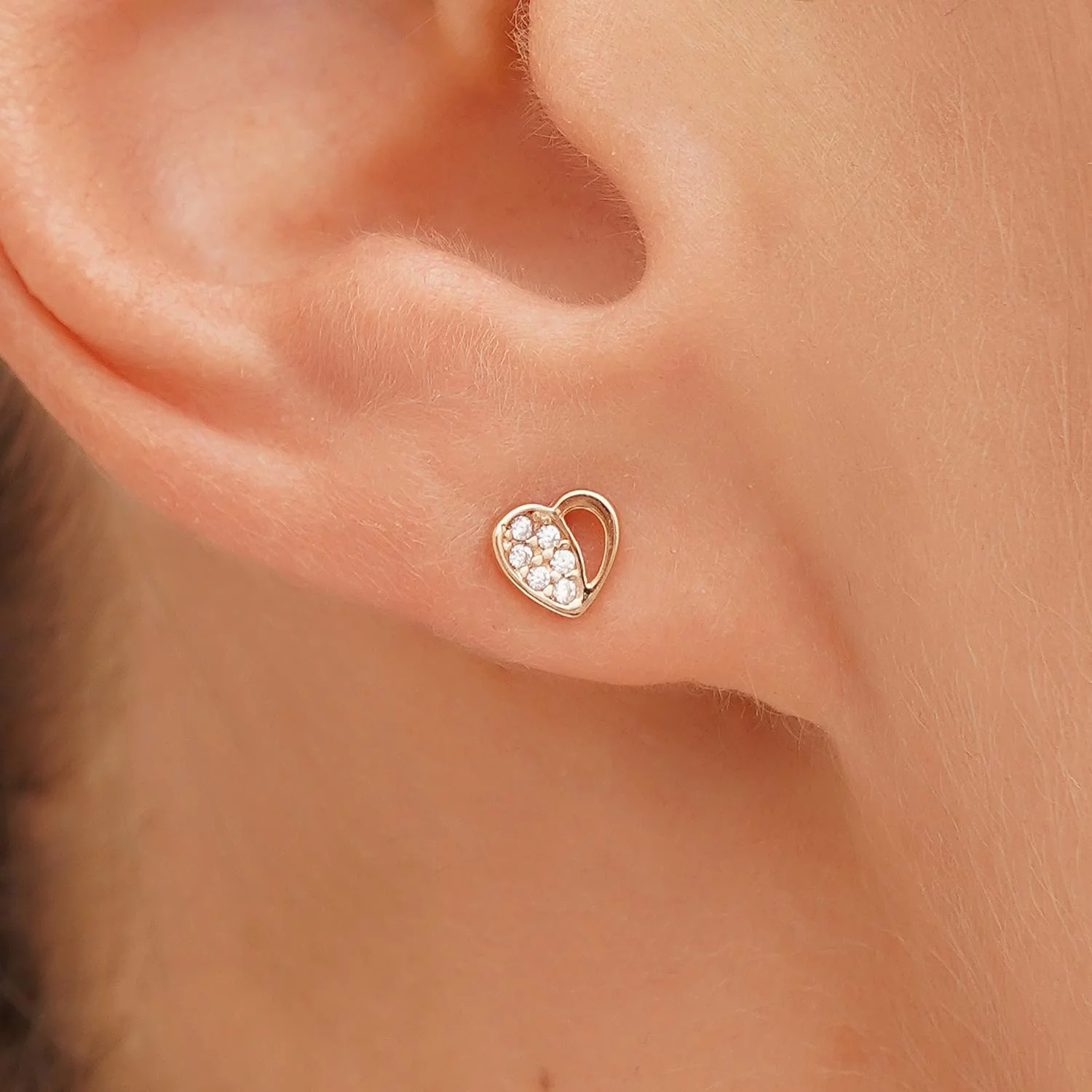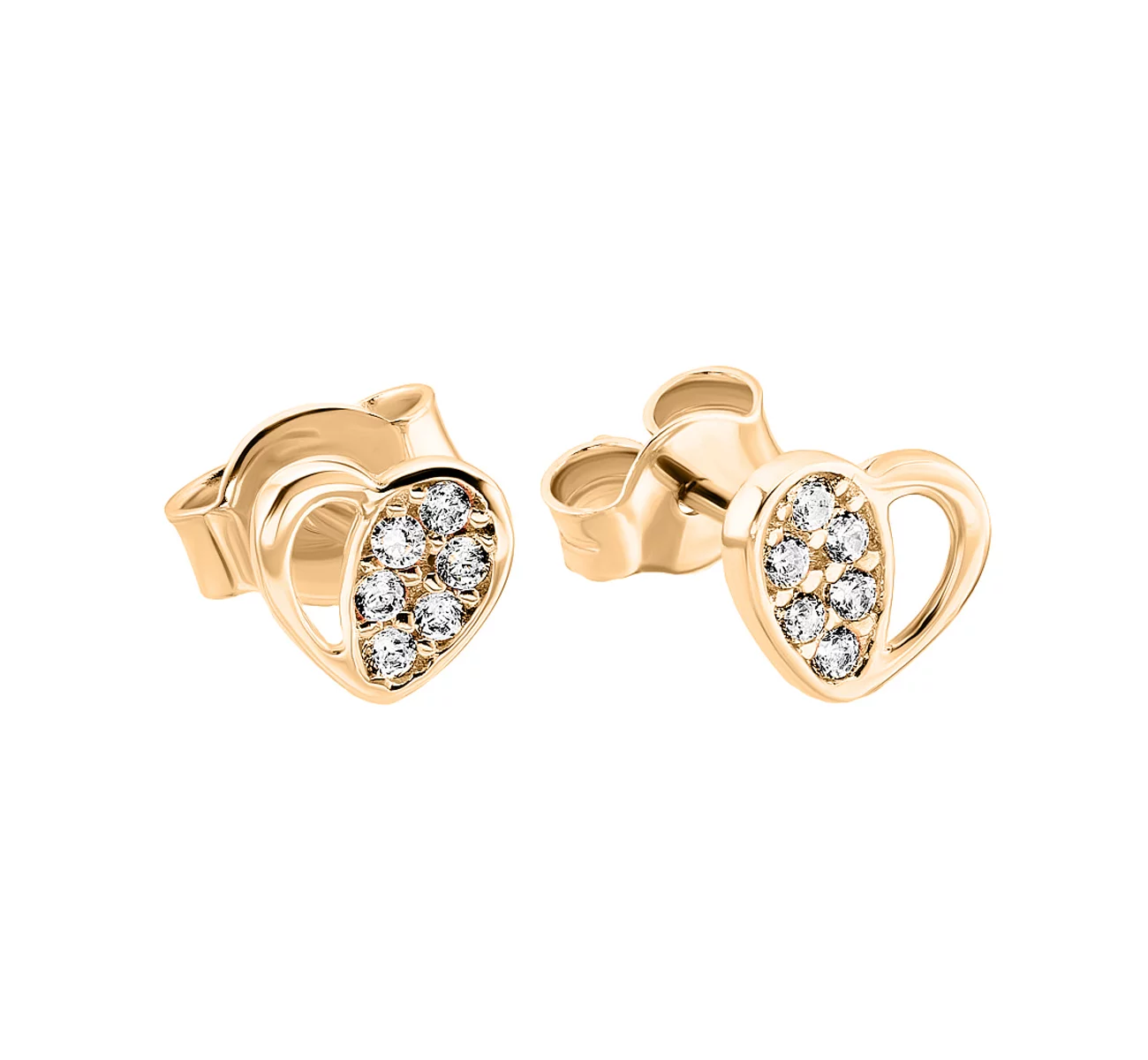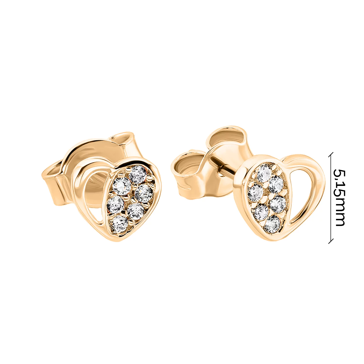 Элегантные сережки-гвоздики в форме сердца из красного золота с фианитами - 1877491