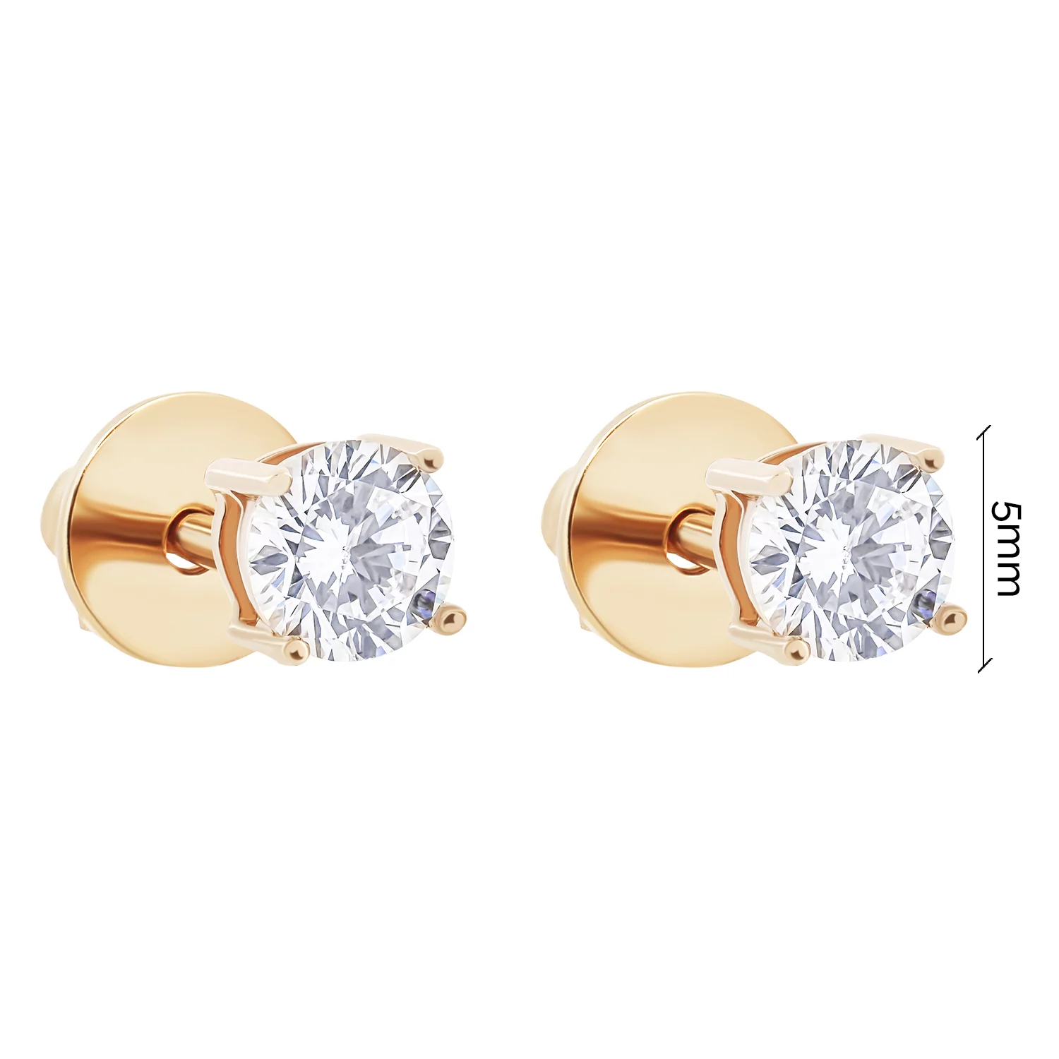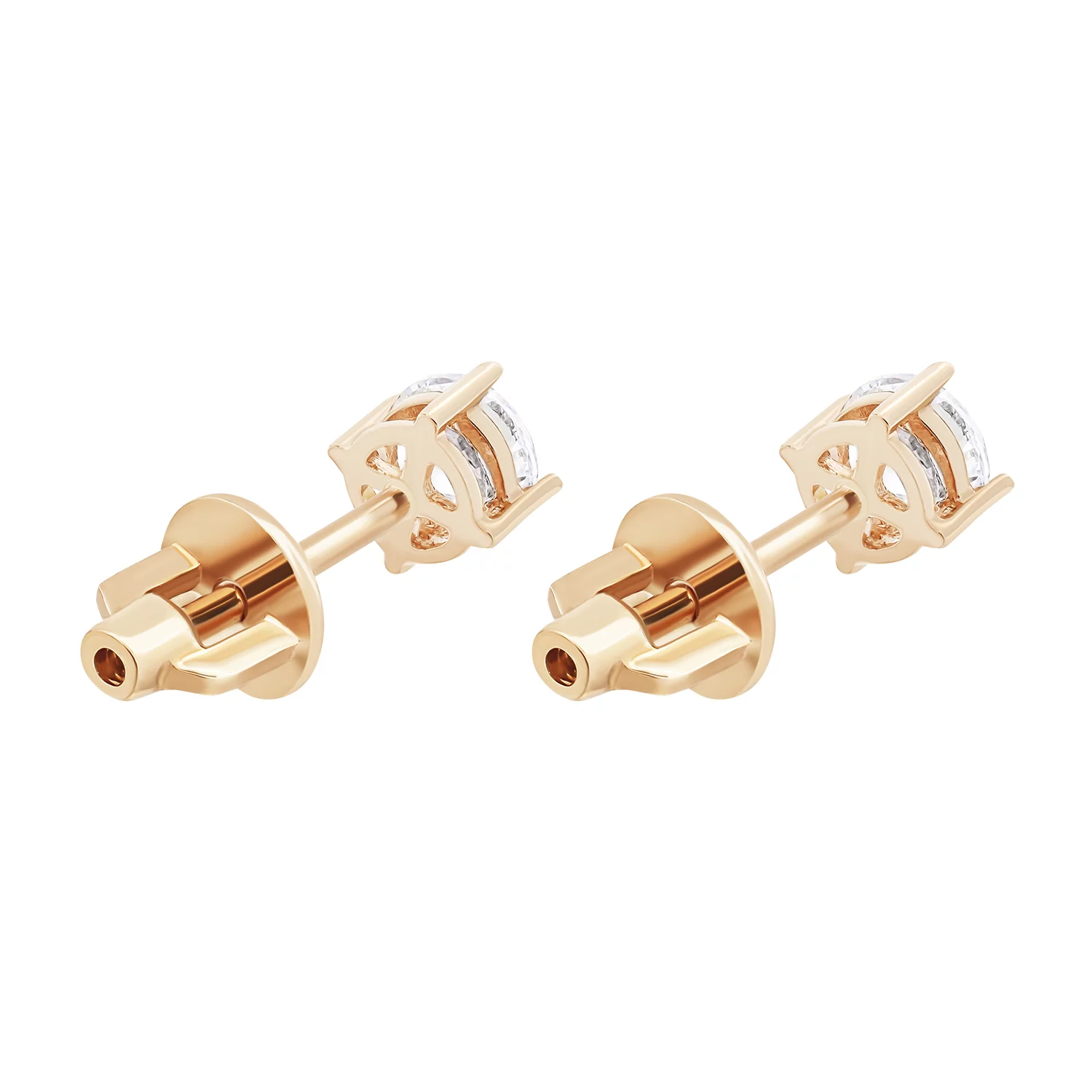 Сережки-гвоздики "Сердце" в романтичном стиле из красного золота и с фианитами - 1859350