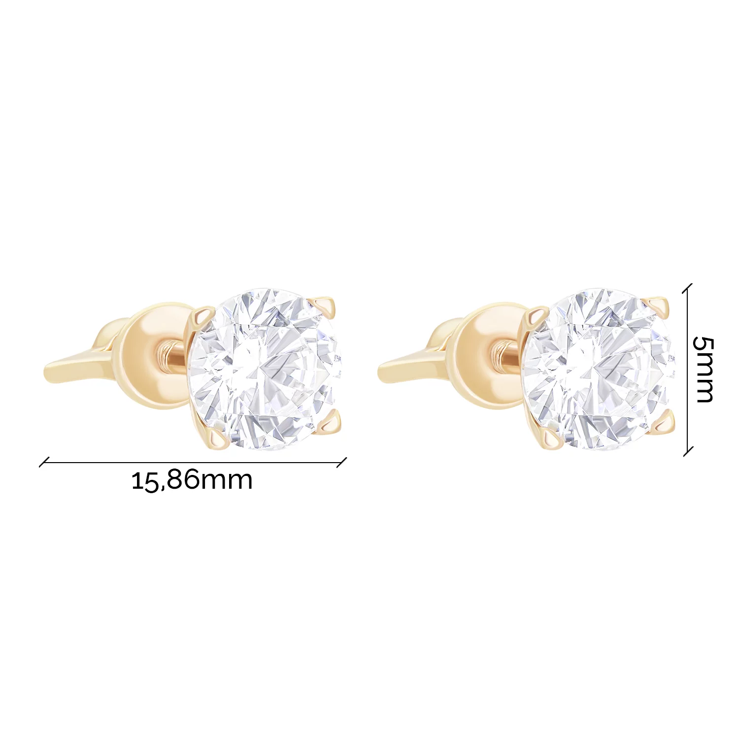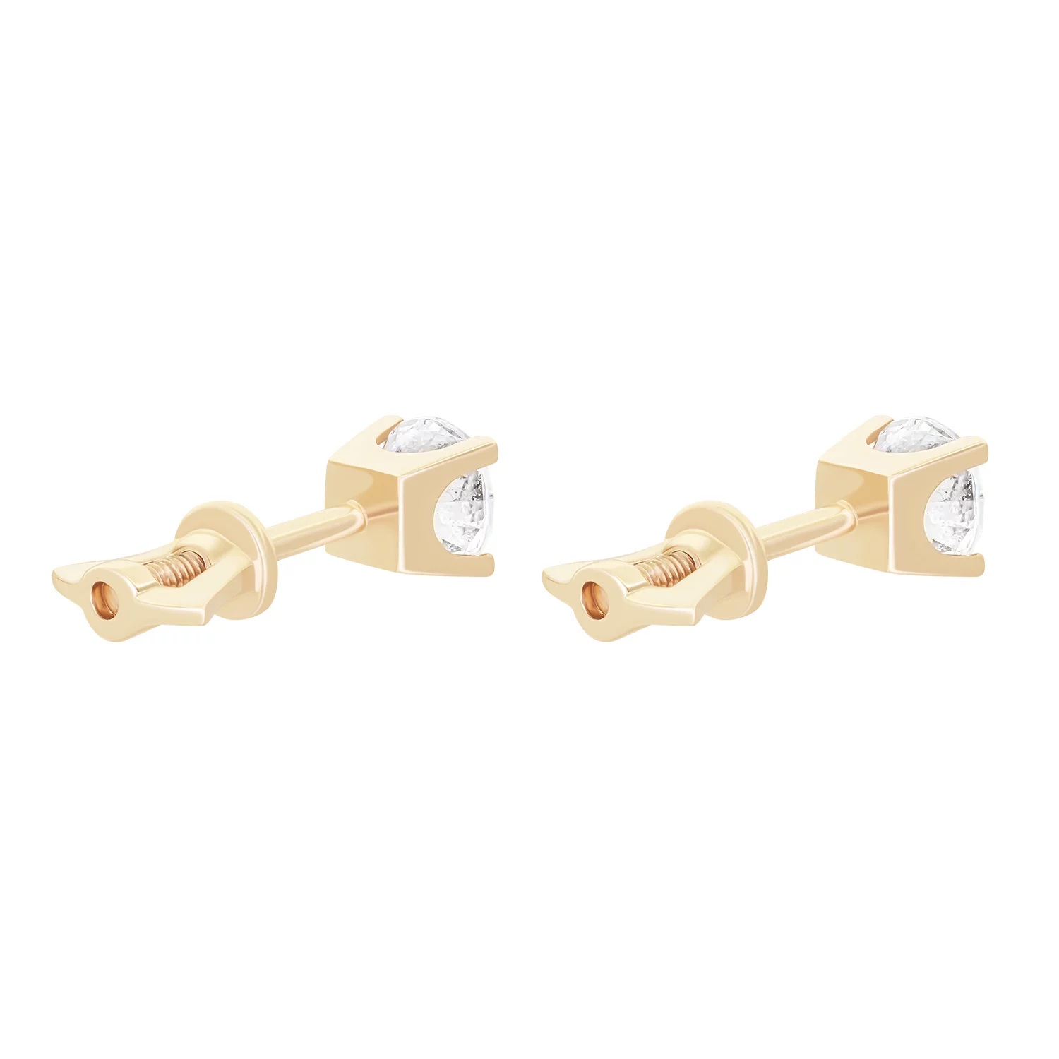 Сережки-гвоздики "Сердце" в романтичном стиле из красного золота и с фианитами - 1859350