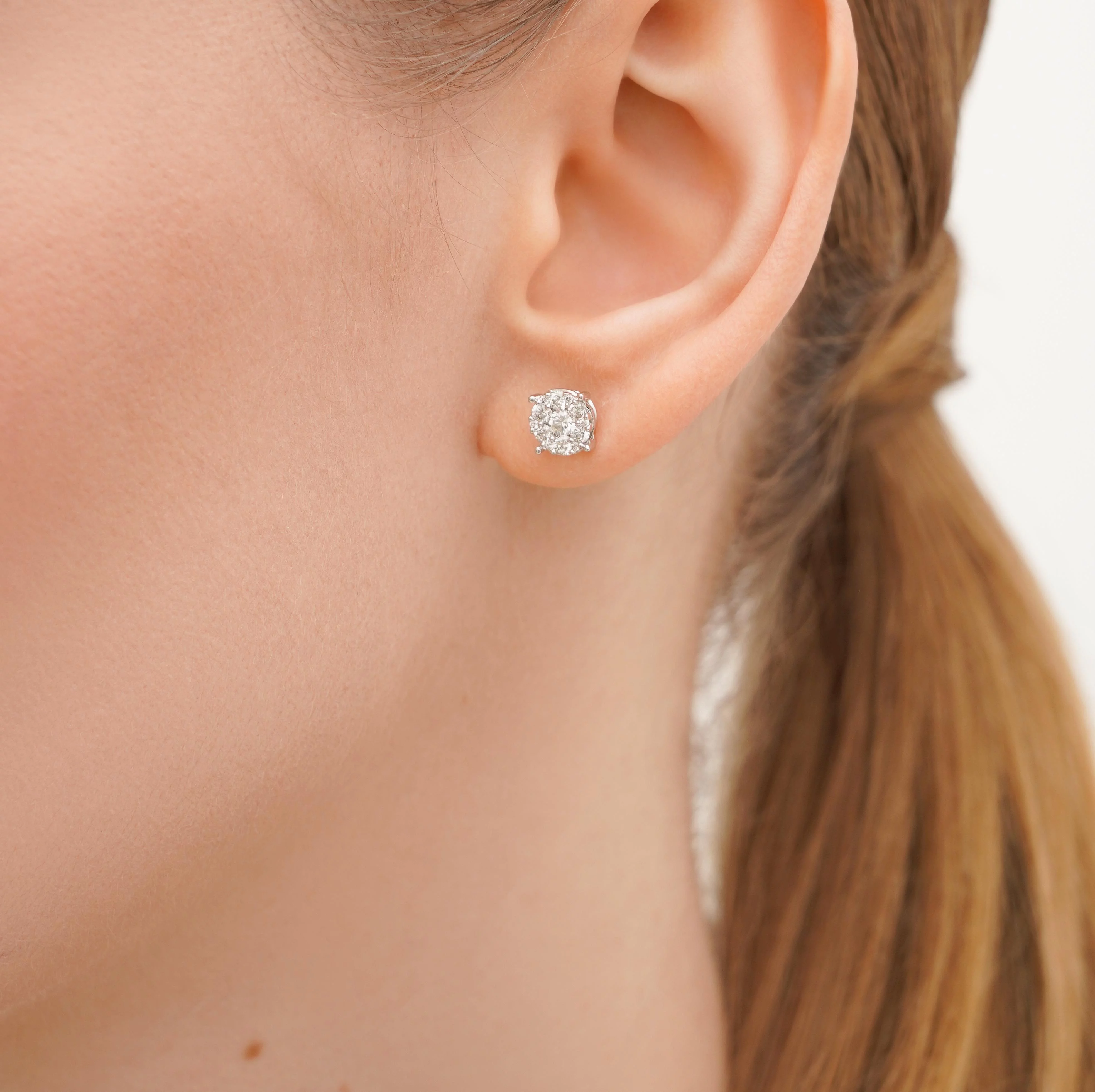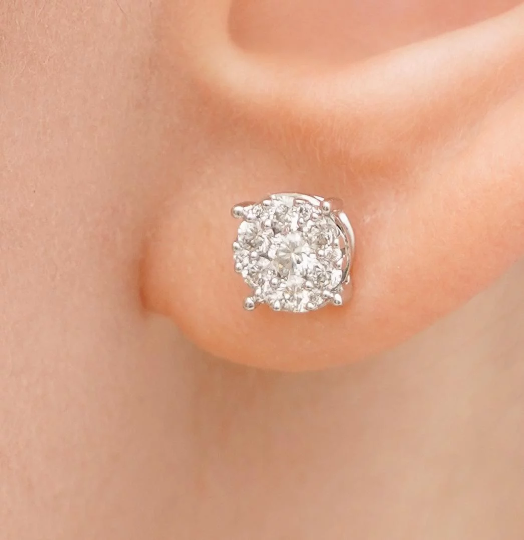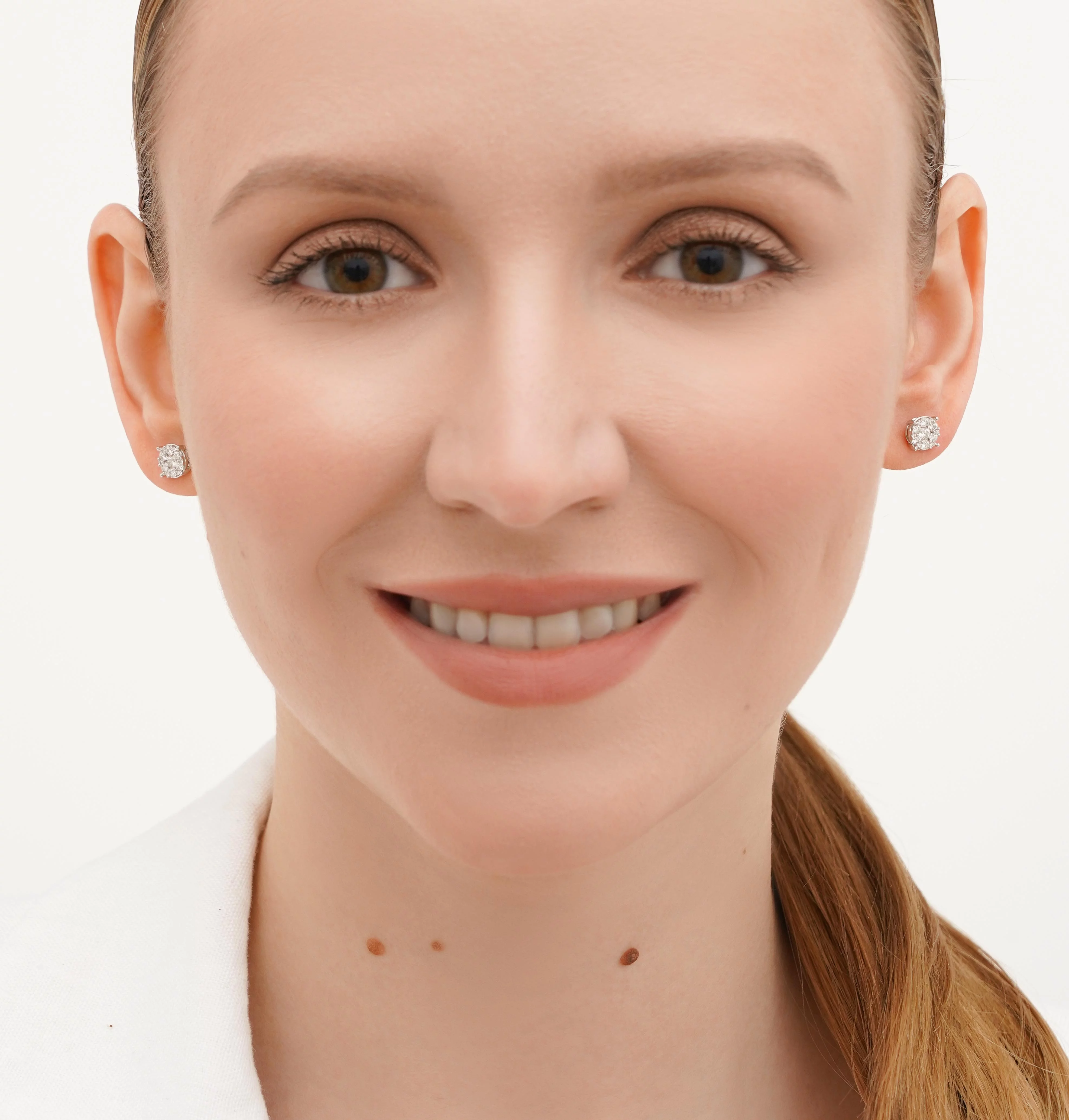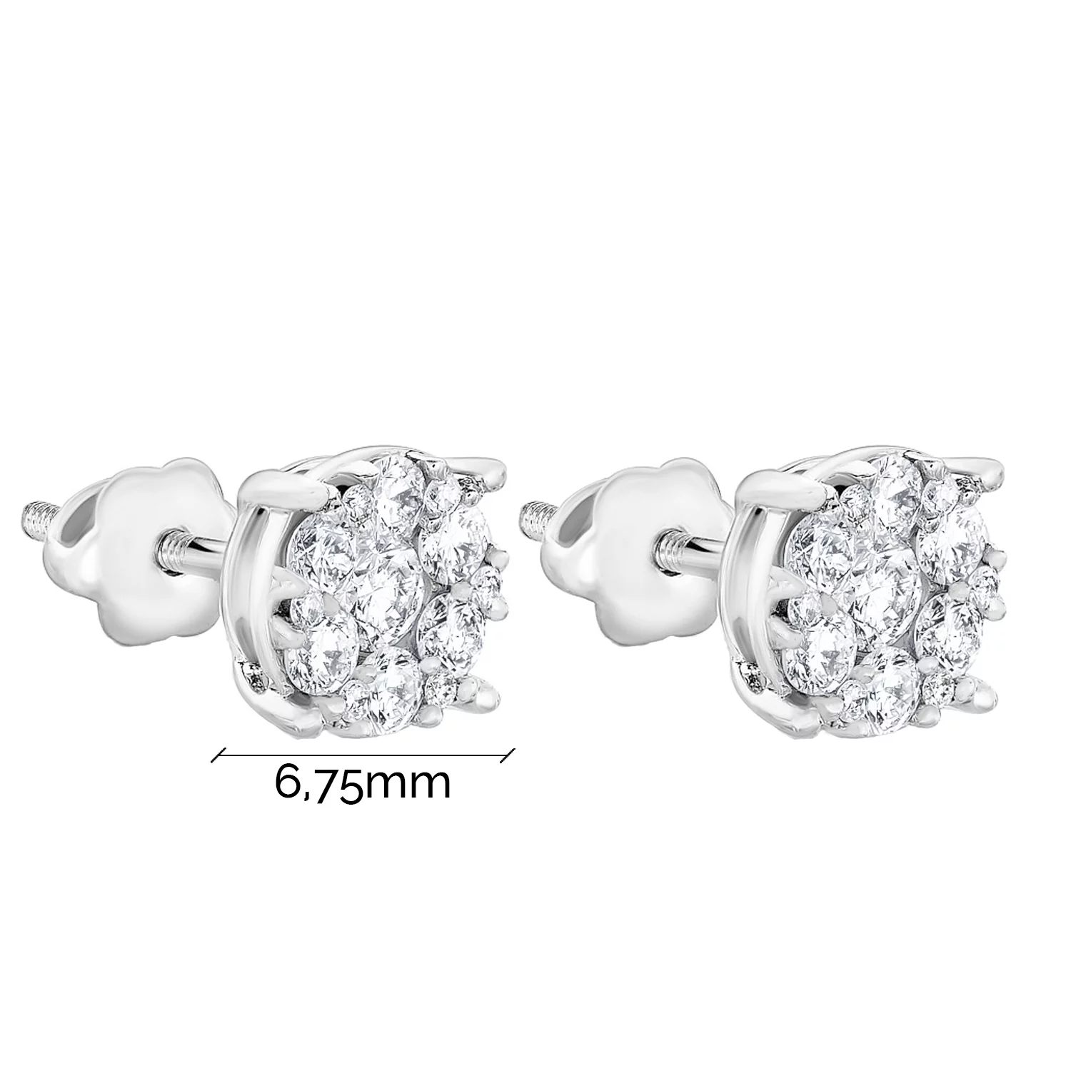 Сережки-гвоздики из белого золота с бриллиантами "Цветочек" - 863721