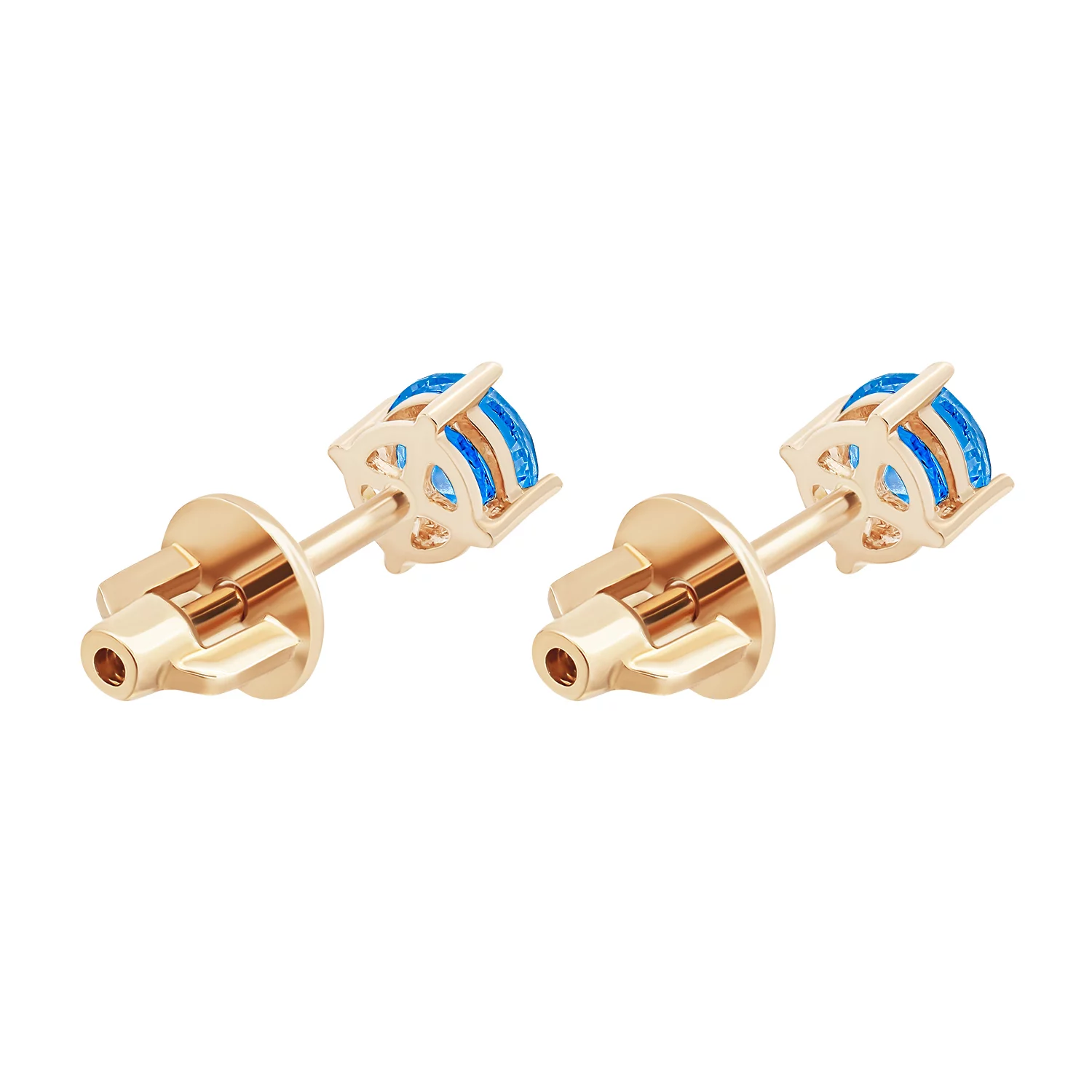 Сережки-гвоздики с топазом лондон и фианитами из красного золота - 1525469