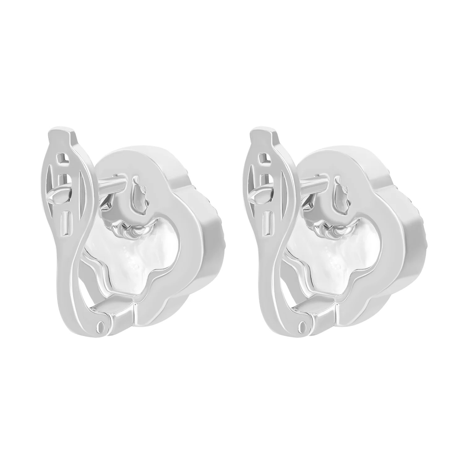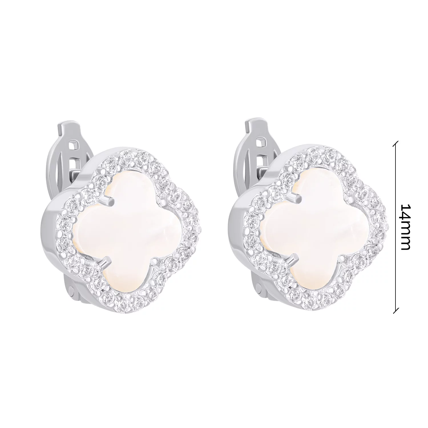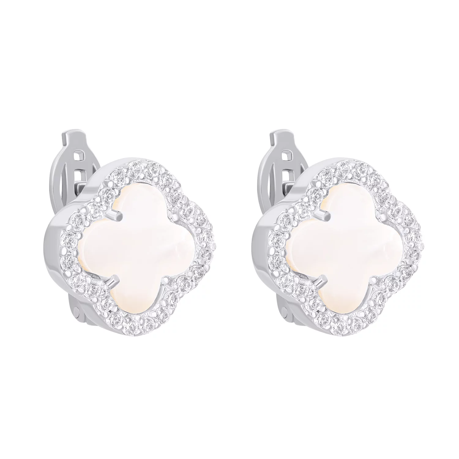 Серьги из белого золота "Клевер" с перламутром и фианитами - 1531151