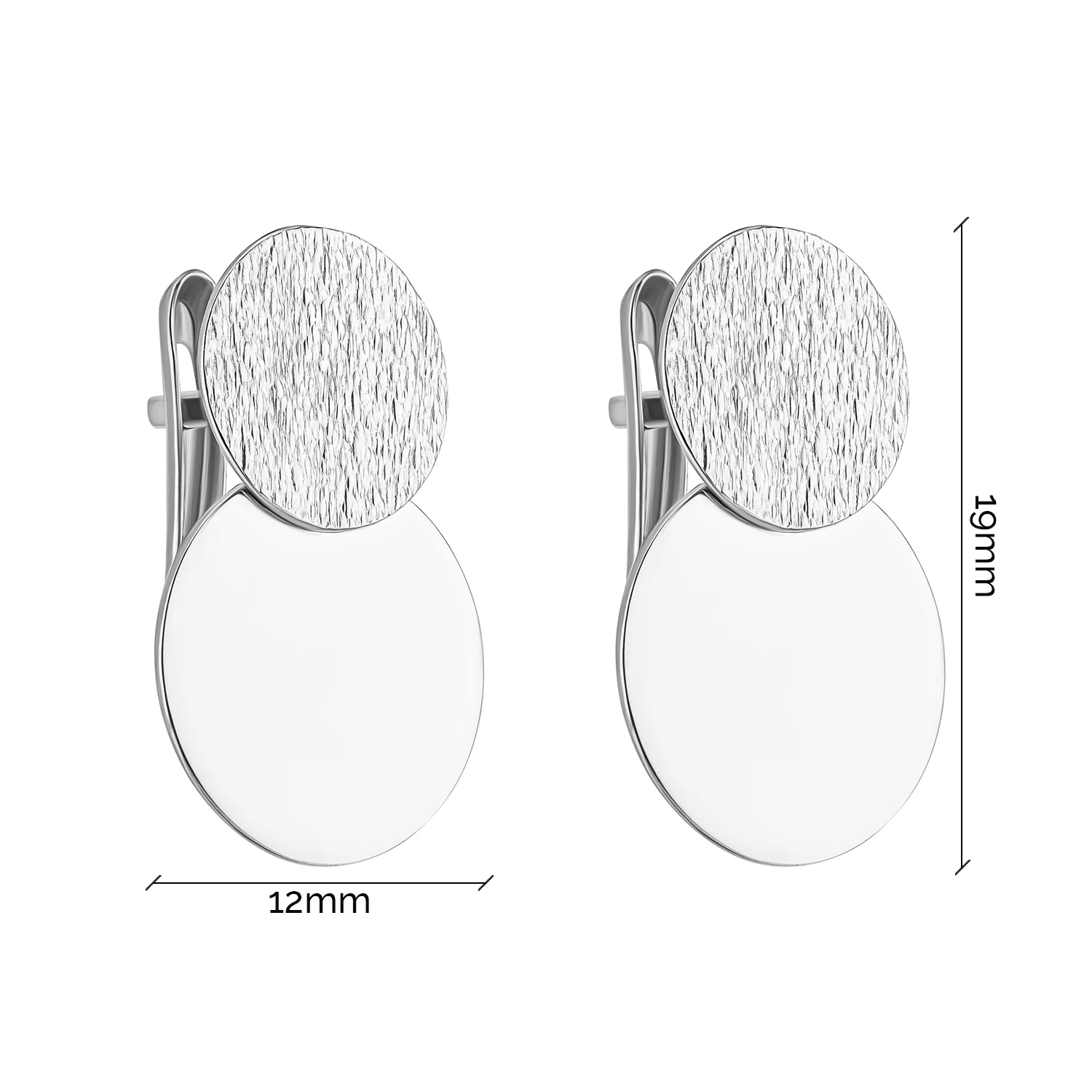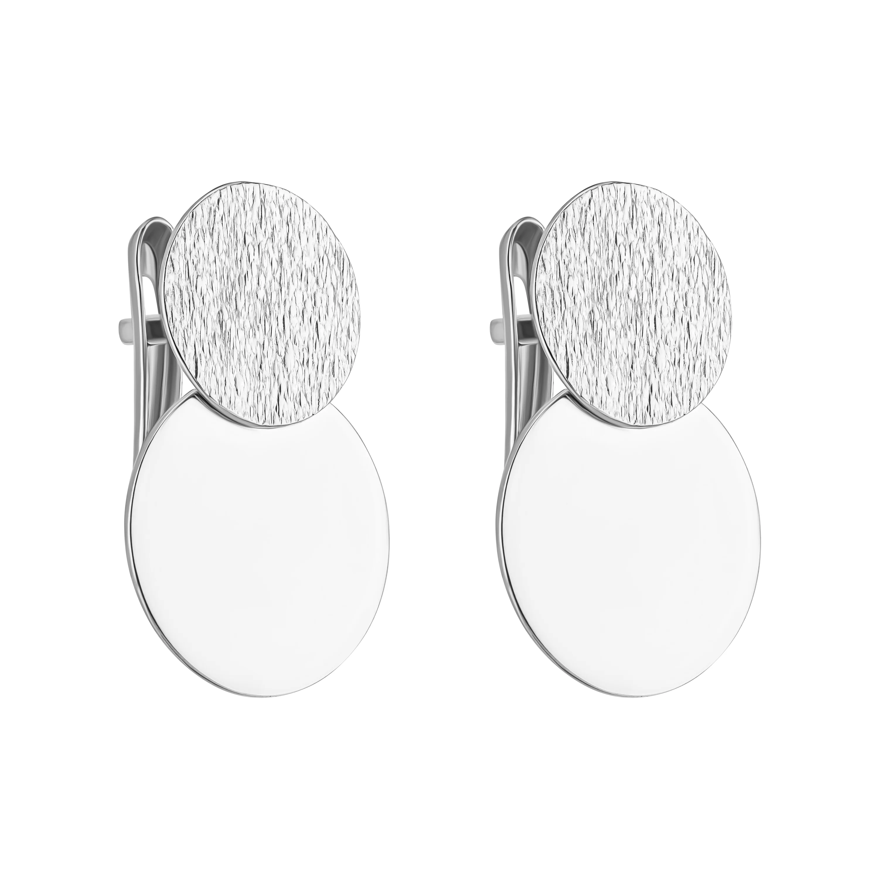 Золотые серьги в форме двух парных монет – не просто стильно, а еще и практично. Украшение среднего размера, не массивное, весьма изящно смотрится на женском ушке. Удобный способ фиксации обеспечивается благодаря английскому замку: серьги плотно прилегают к телу, не давят, легко надеваются и снимаются. Модель объединяет простоту минимализма и ультрасовременные эффекты.