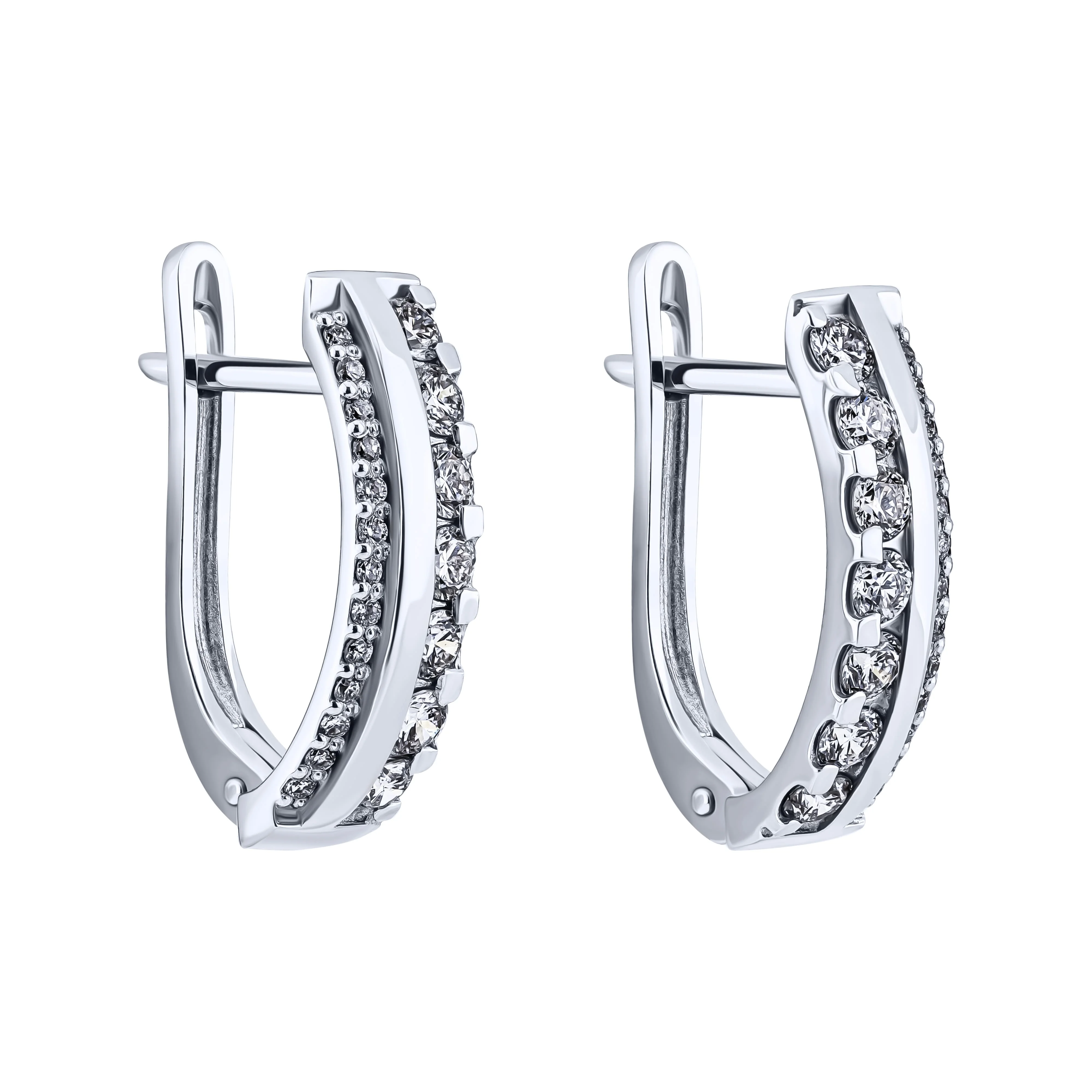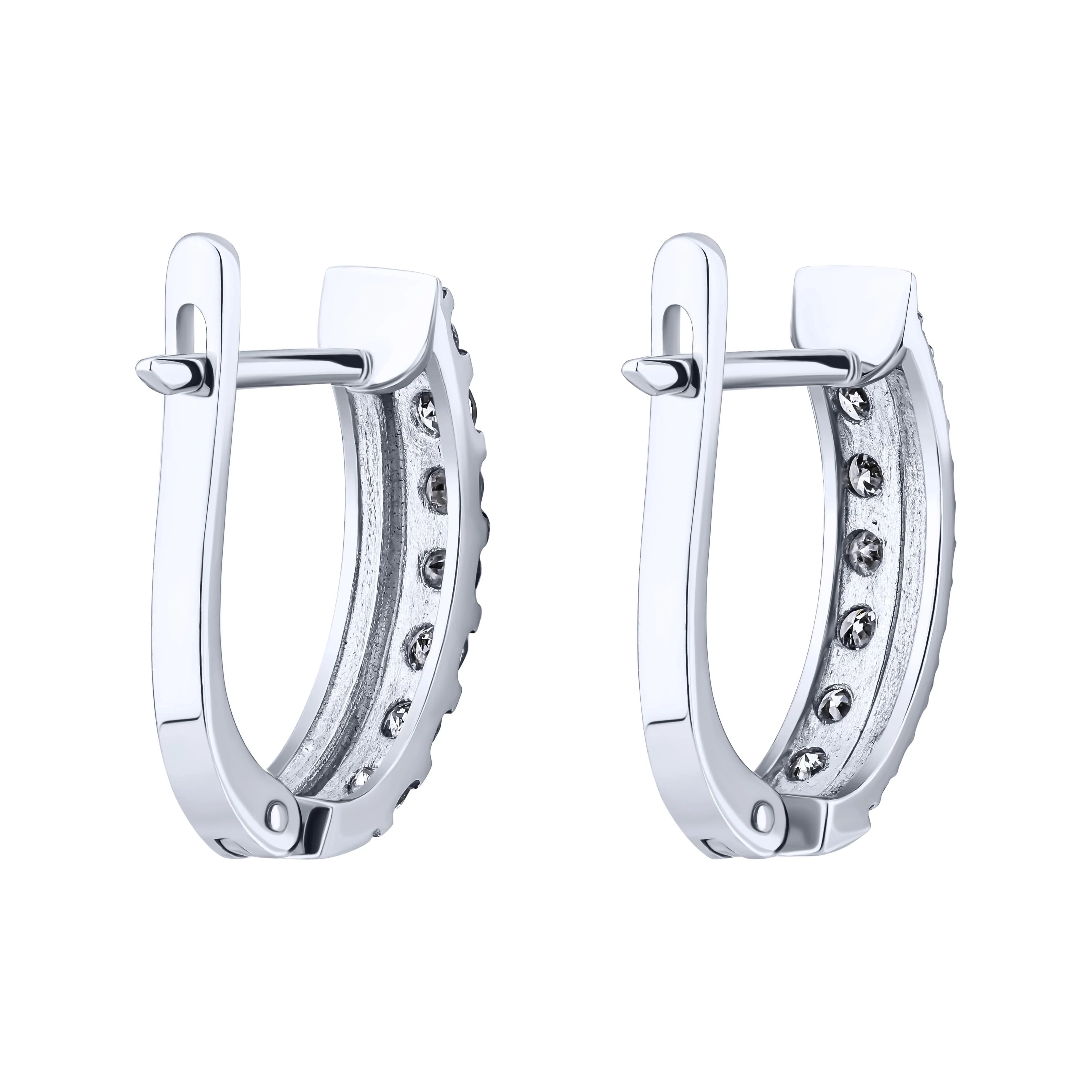 Сережки-гвоздики из белого золота с бриллиантами и сапфирами - 1474553