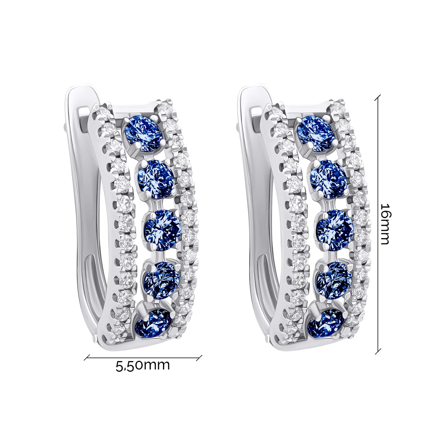 Сережки-гвоздики из белого золота с бриллиантами и сапфирами - 1474553