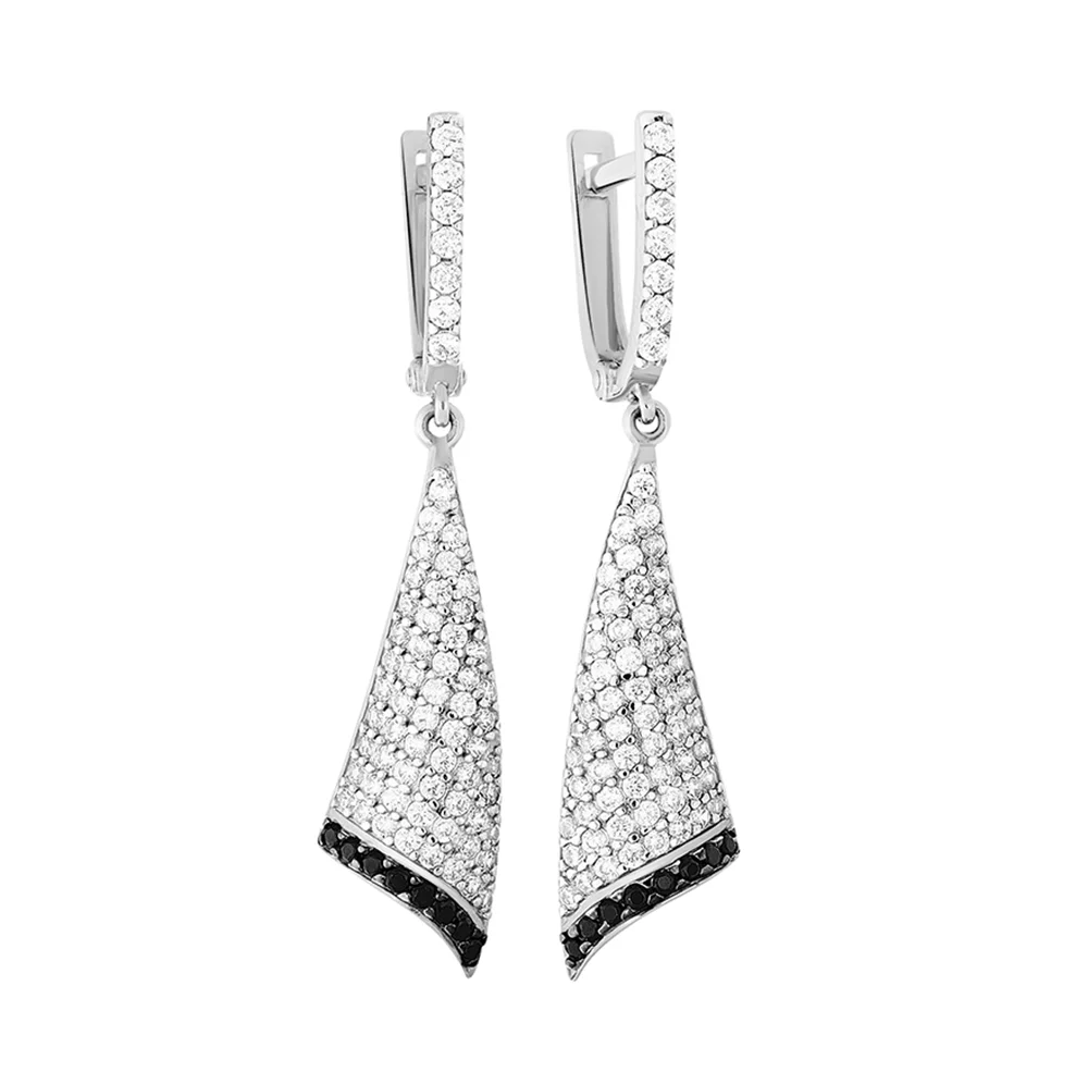 Серьги из белого золота с подвесами и фианитами "Треугольники" - 1504863