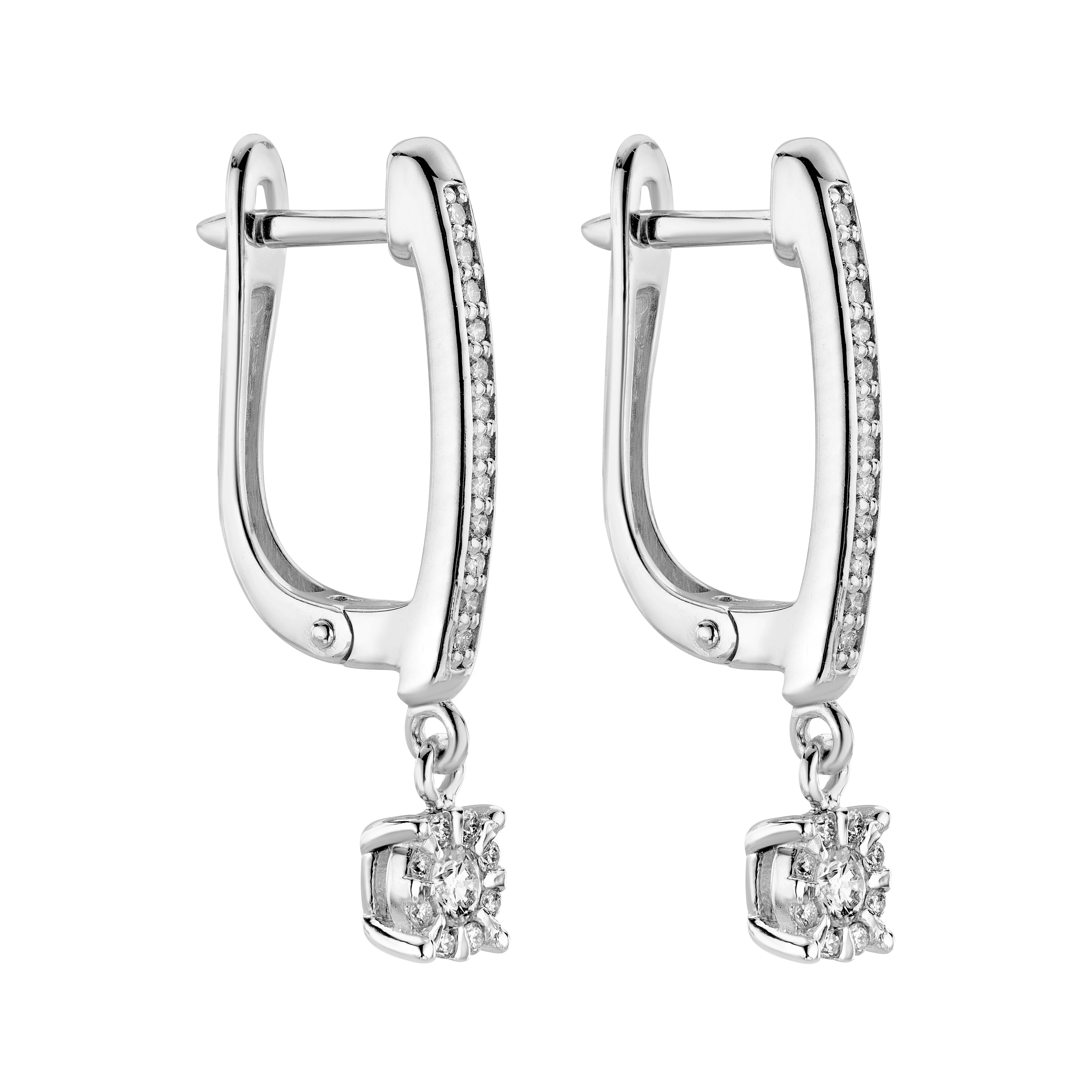Серьги из белого золота с подвесом и россыпью бриллиантов - 2182594