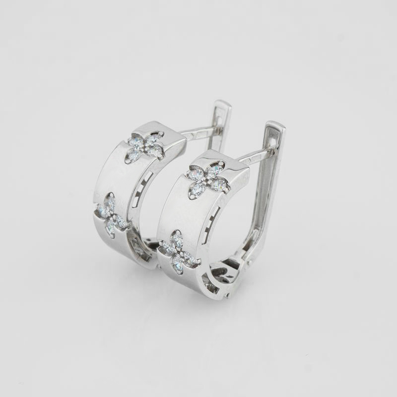 Серьги из белого золота "Цветок" с фианиатами - 2134282