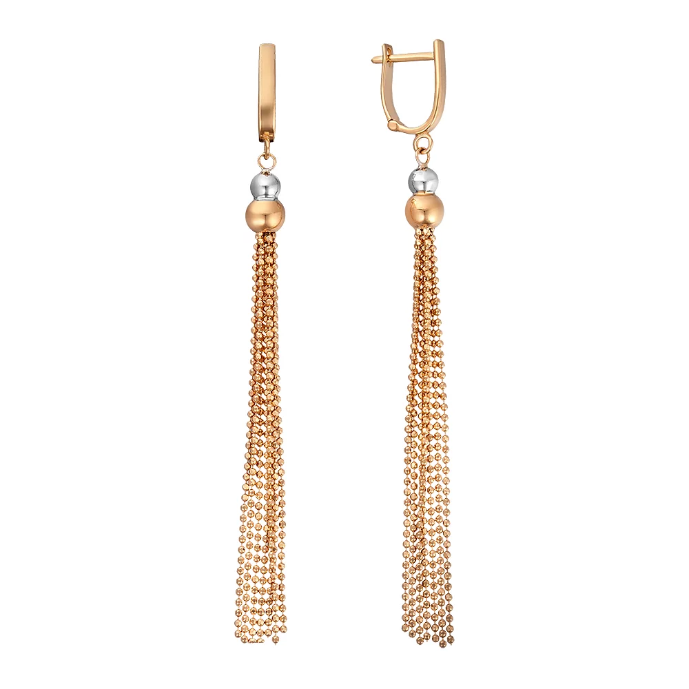 Серьги из комбинированного золота с подвесами - 594070