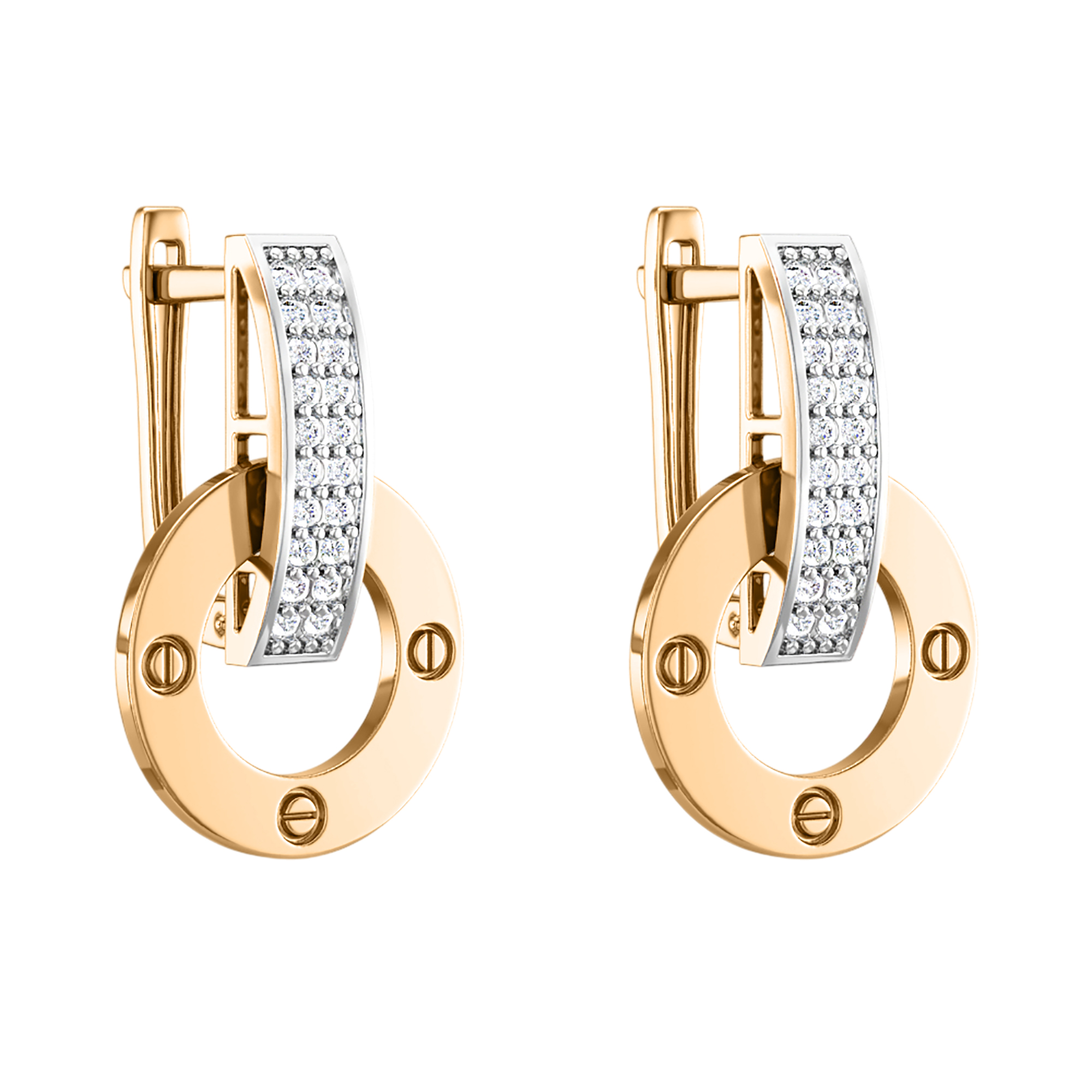 Серьги из комбинированного золота "Love" с фианитами - 2142144