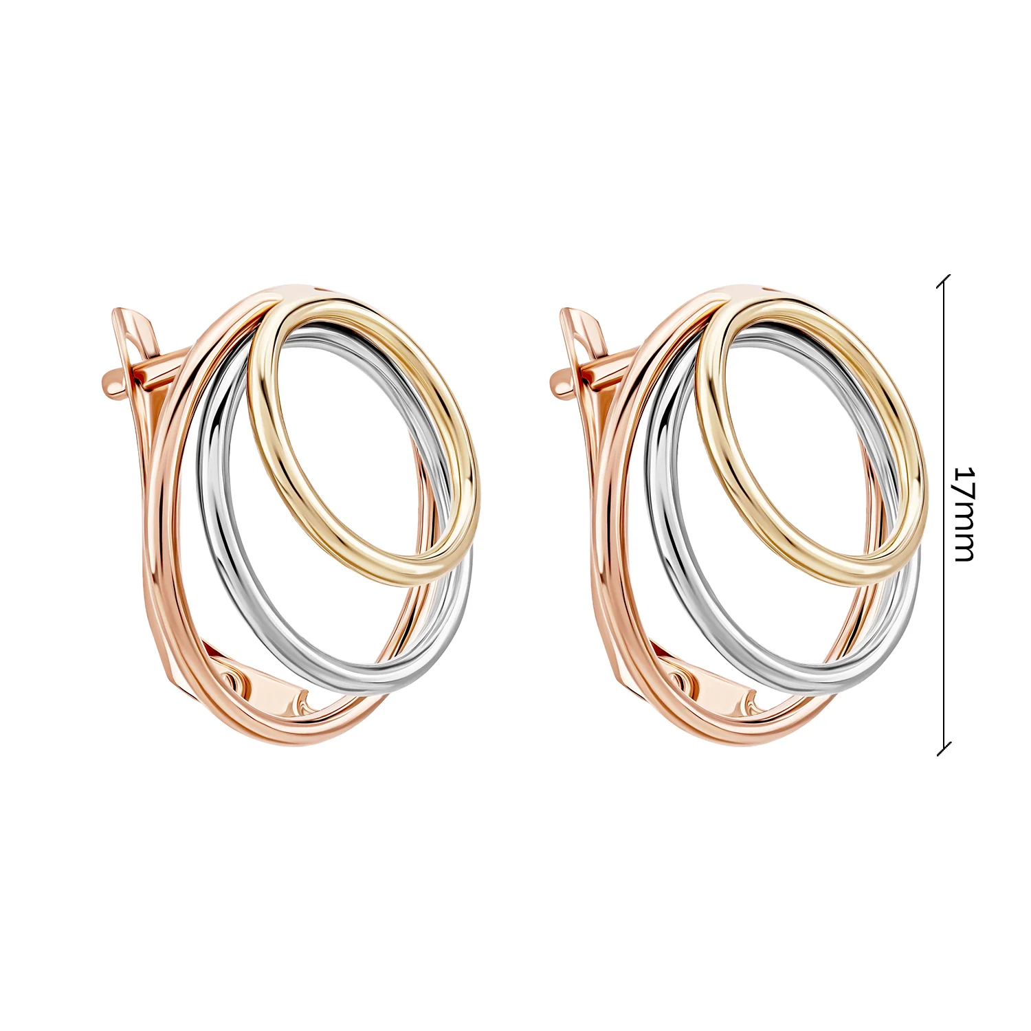 Необыкновенные серьги "Тринити" – это союз разных видов золота, изысканное оформление и качественная отделка. Представляют собой фантазийное переплетение кругов между собой. Имеют удобный замочек, что позволяет за пару секунд одевать и снимать драгоценность. Фэшн-дизайн выгодно расставляет акценты: здесь объединяются современные тренды, а также остается место для индивидуальной эклектики. Гармония цветов и оттенков создает впечатление легкости. Носить такой аксессуар – эстетическое удовольствие, всегда хорошее настроение и возможность каждый день быть на вершине модного олимпа. Выбор №1 женщин, которые ценят простоту, элегантность и некую загадку в образе.