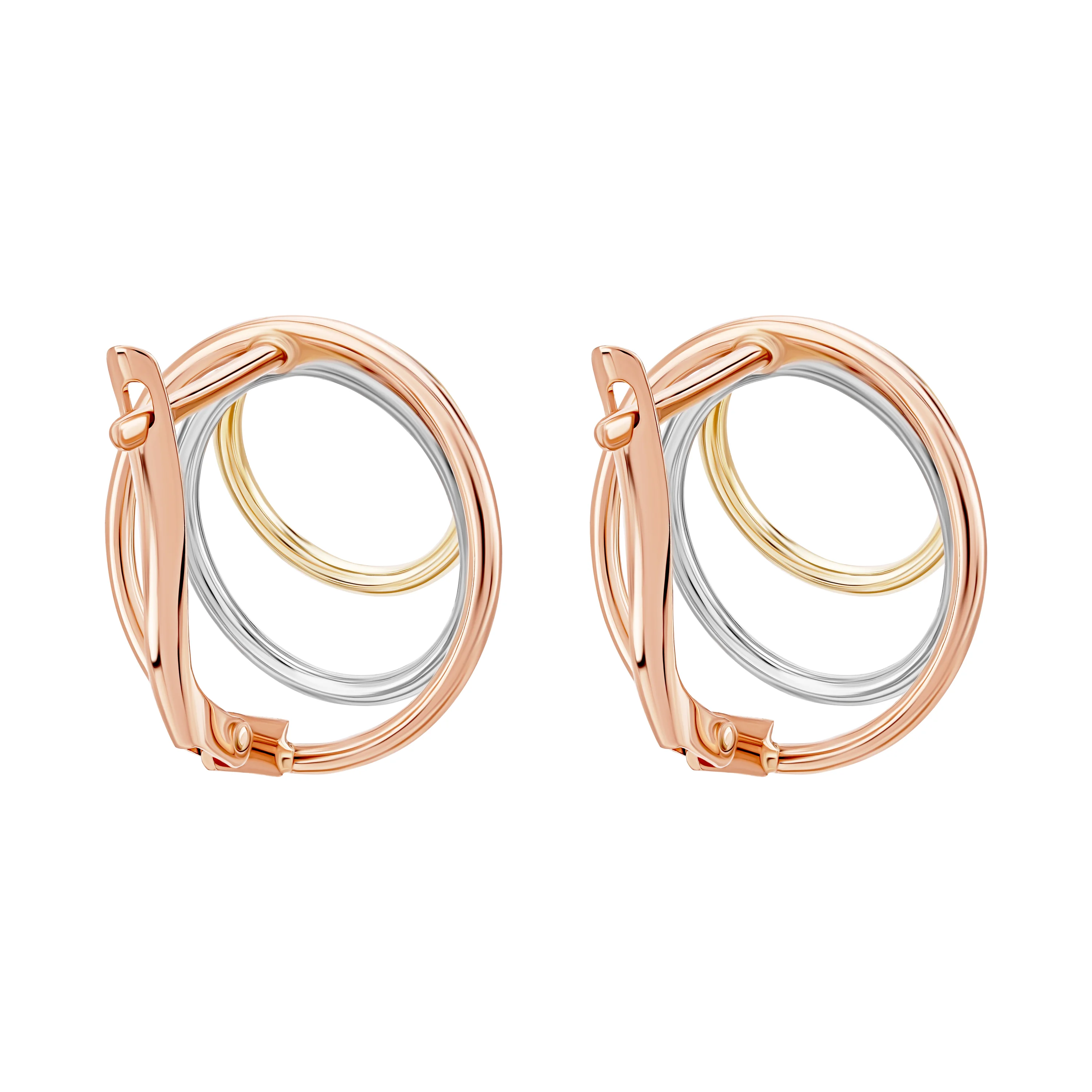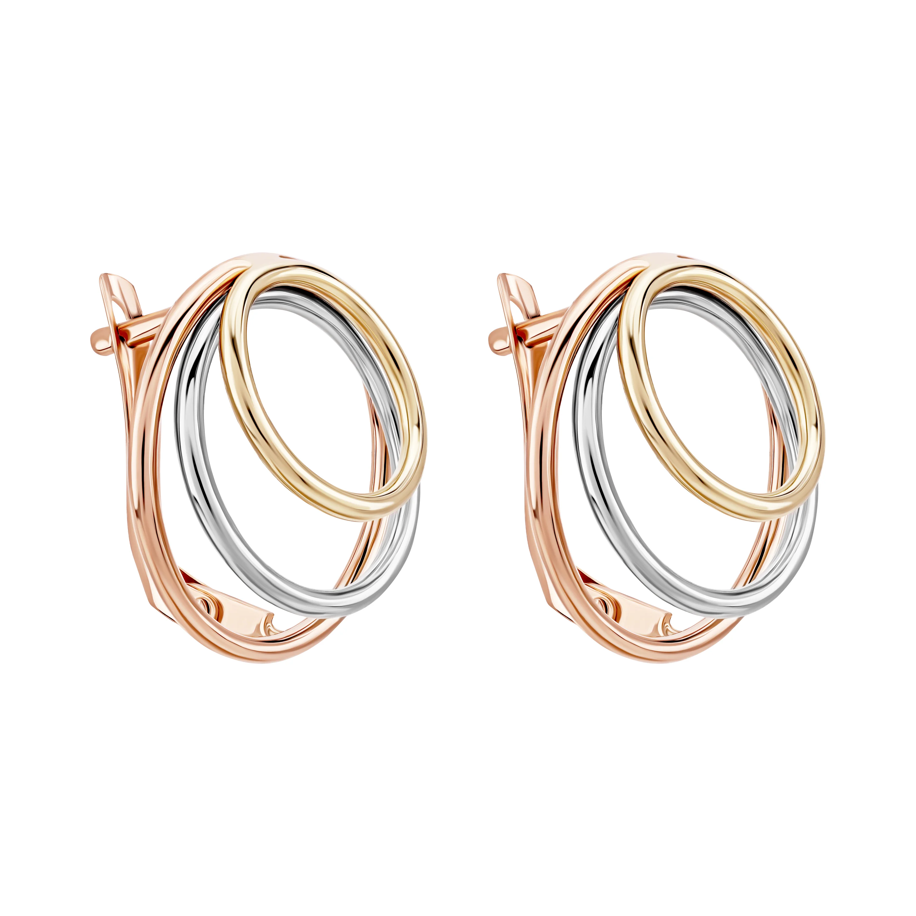Серьги "Тринити" из комбинированного золота - 2010225