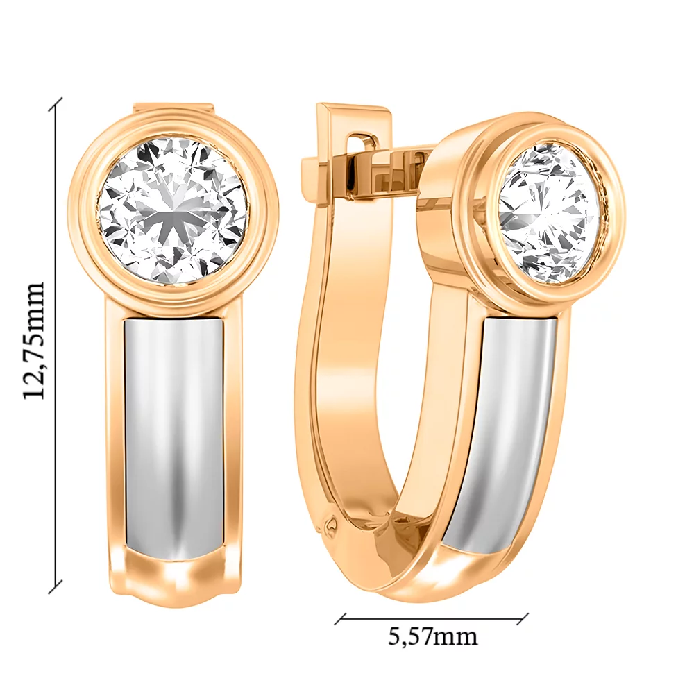 Прямоугольные сережки с фианитами и эмалью из красного золота - 1614023