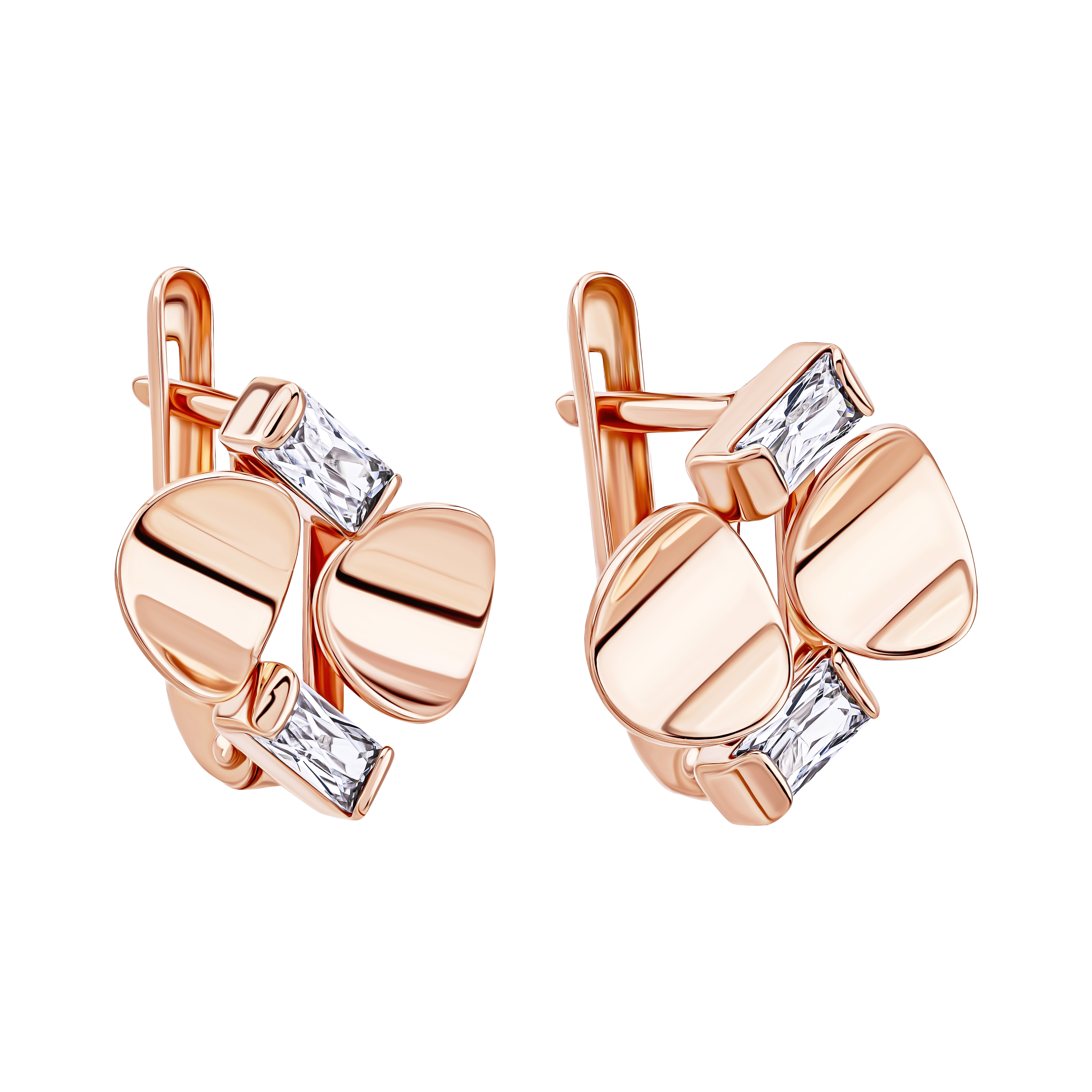 Серьги из красного золота "Геометрия" с фианитами - 2098256