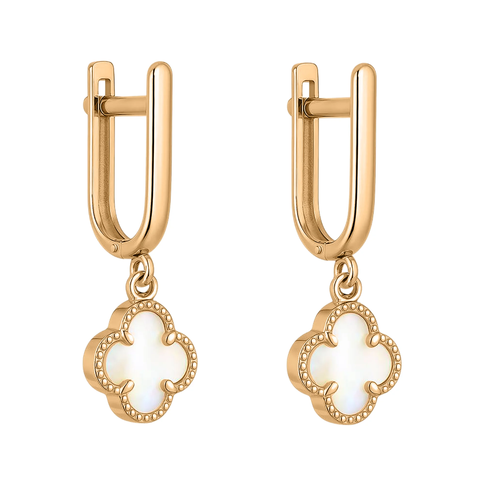 Серьги из красного золота "Клевер" с перламутром - 2139261
