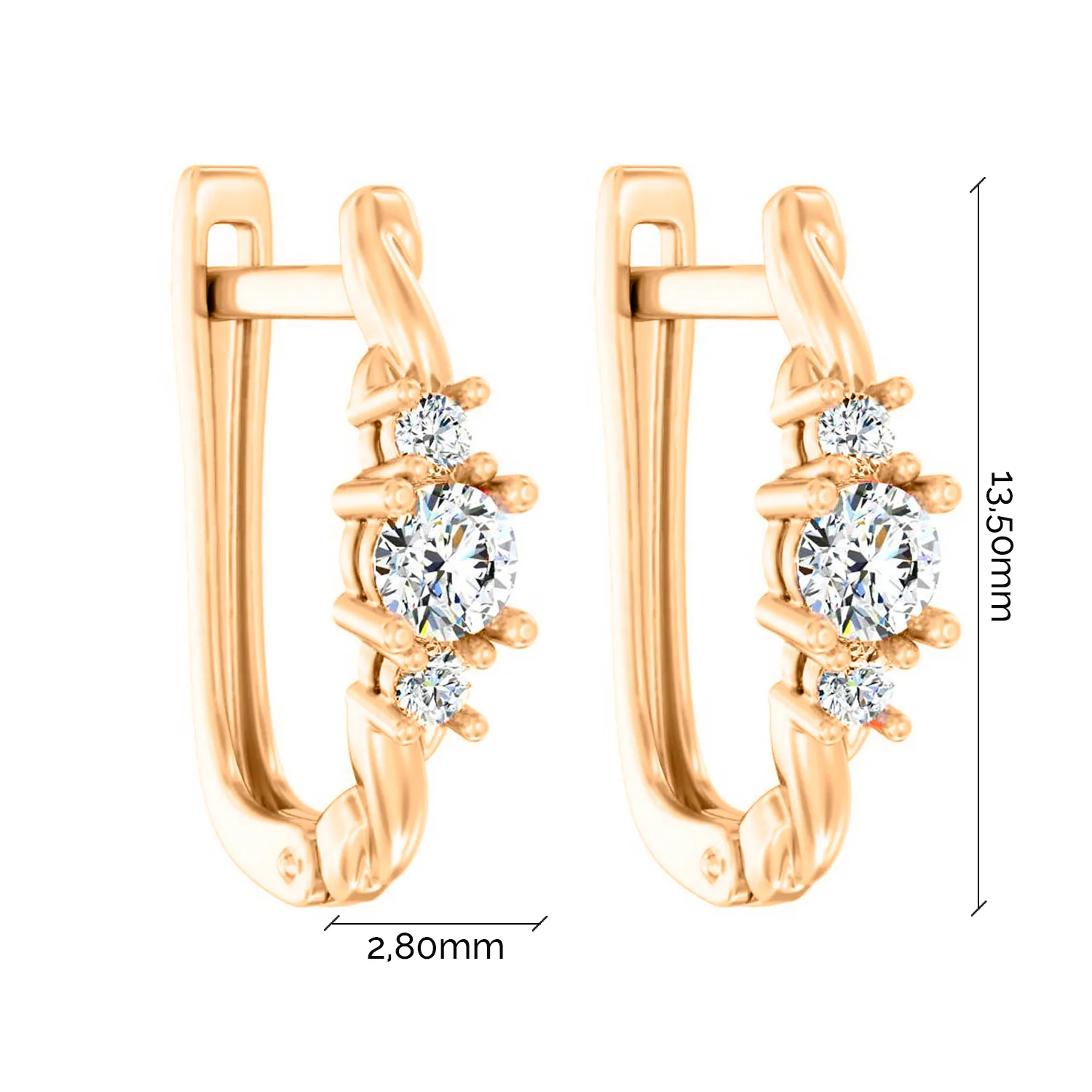 Серьги-гвоздики из красного золота с подвесами и с дорожкой бриллиантов - 1819027