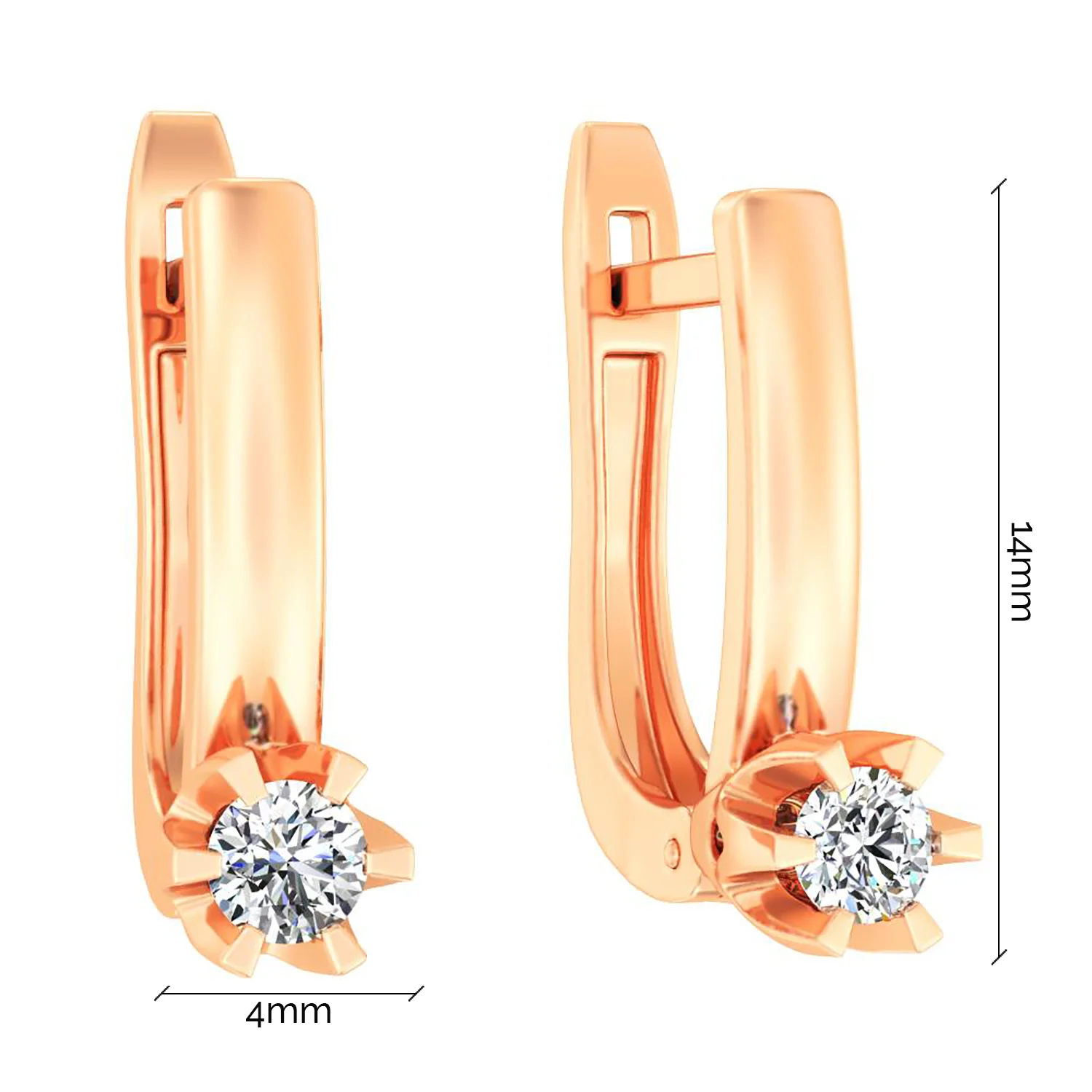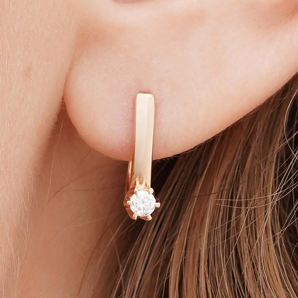 Сережки в классическом стиле с бриллиантами в красном золоте - 1867031
