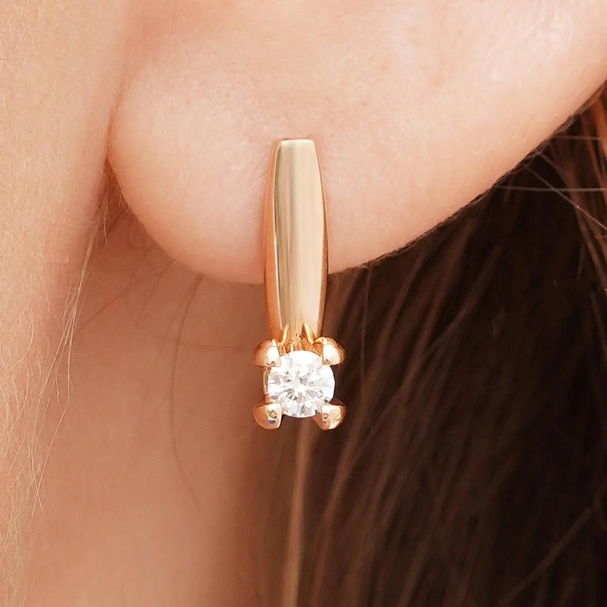 Серьги-гвоздики с бриллиантом в стиле минимализм в красном золоте - 1801732