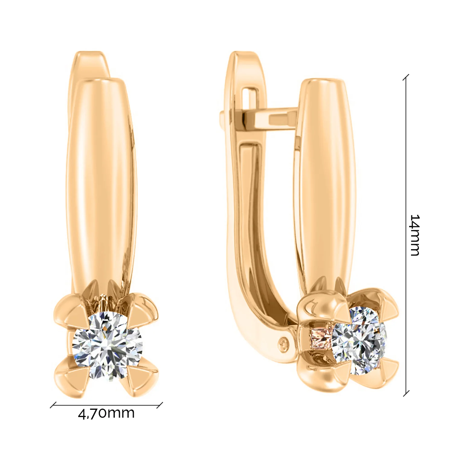 Сережки-протяжки в классическом стиле из красного золота с бриллиантами - 1873989