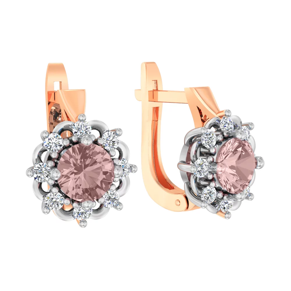 Серьги из красного золота с кварцем и фианитами - 1502221