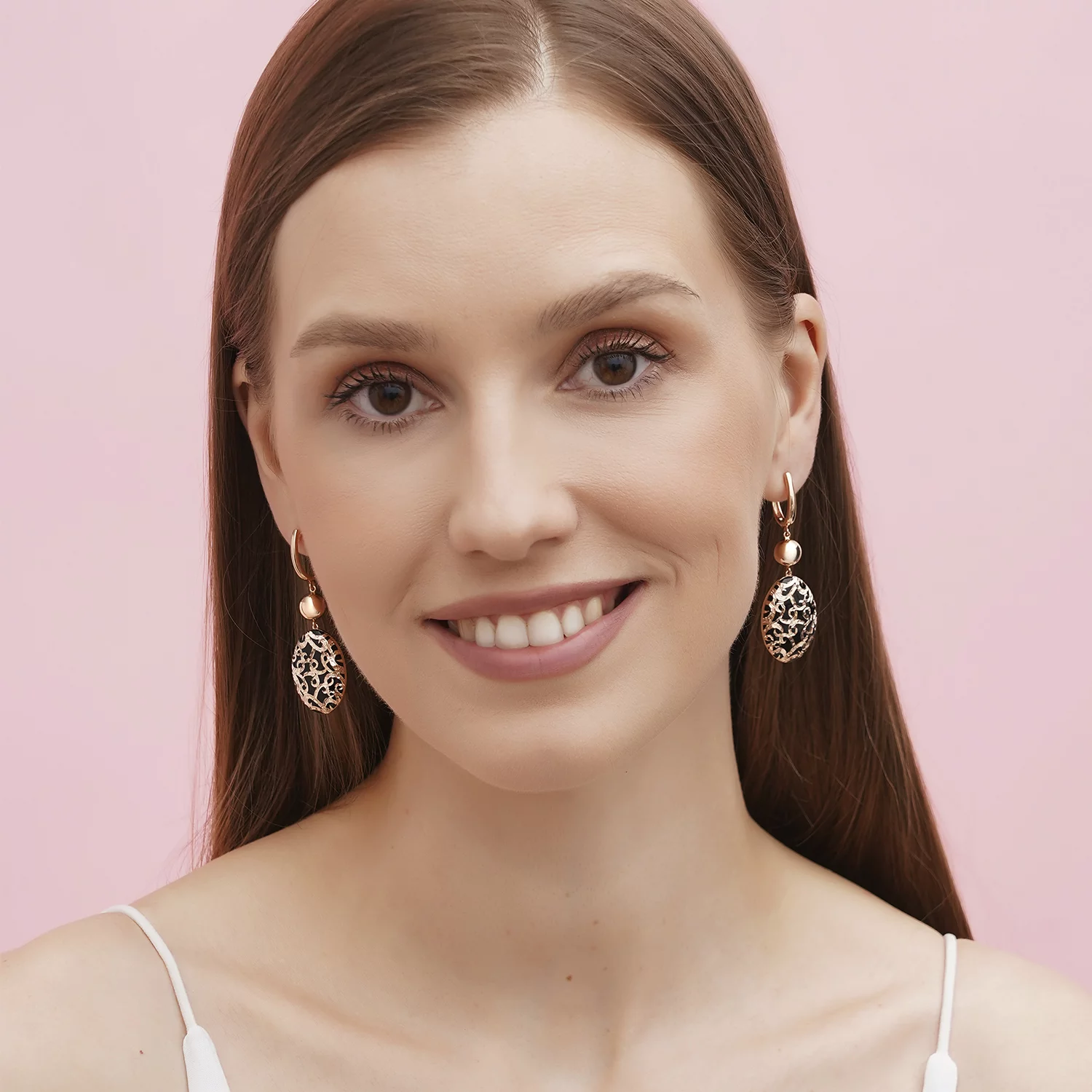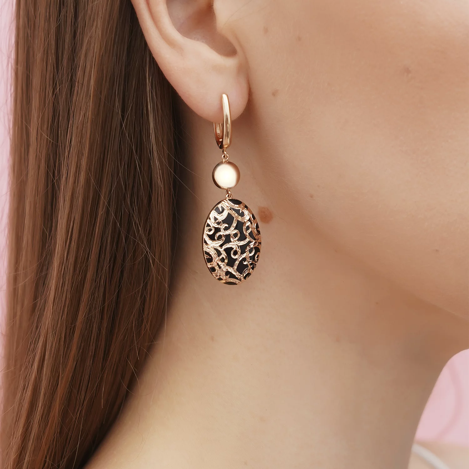 Стильные сережки с подвесами в красном золоте с эмалью и фианитом - 1928138