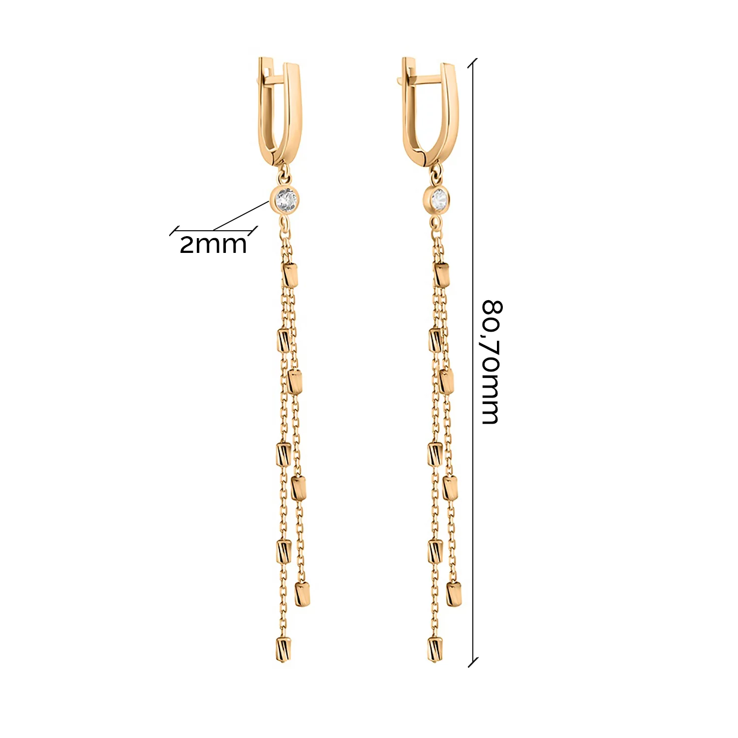 Золотые серьги с подвесками "Палочки" с фианитом и алмазной гранью - 1530961