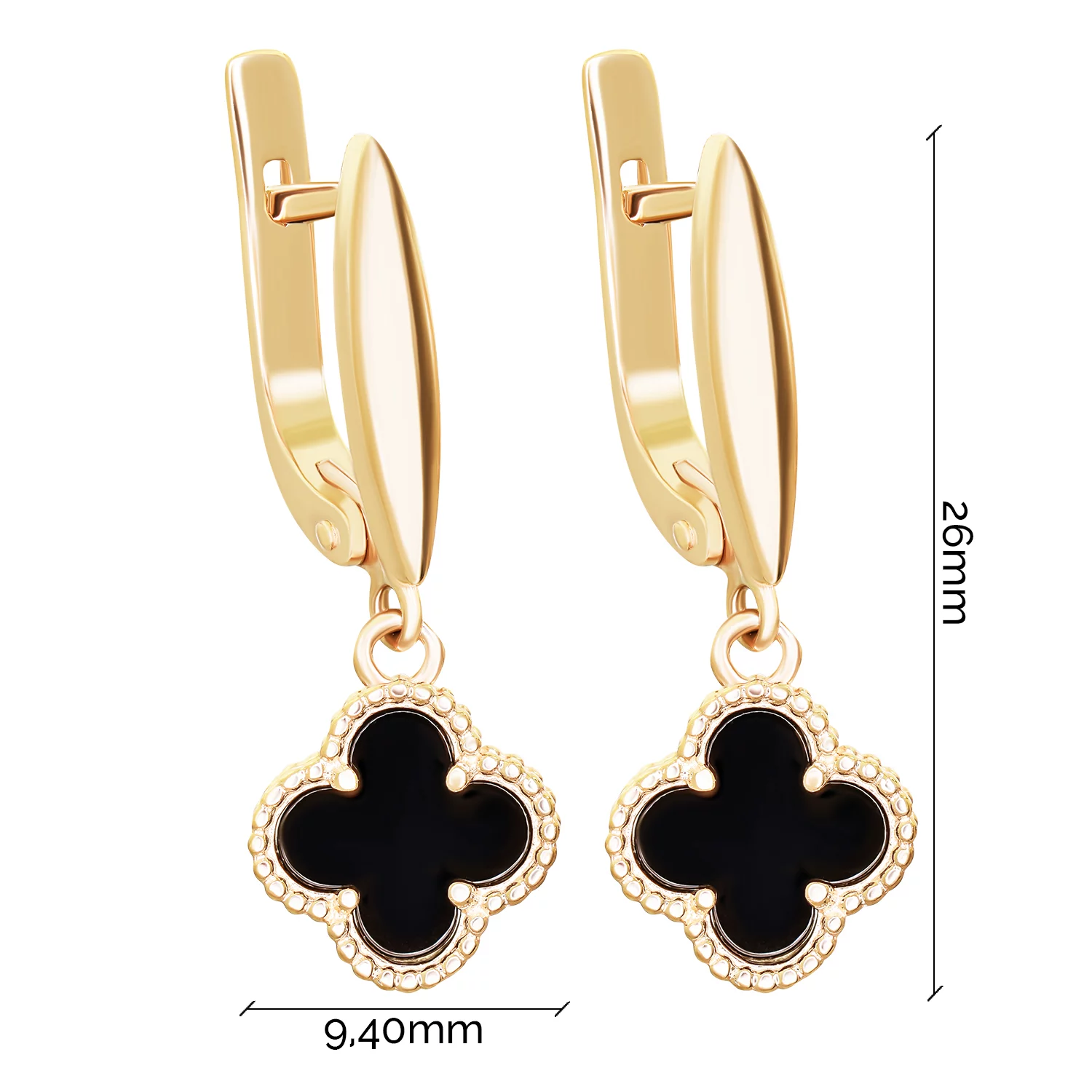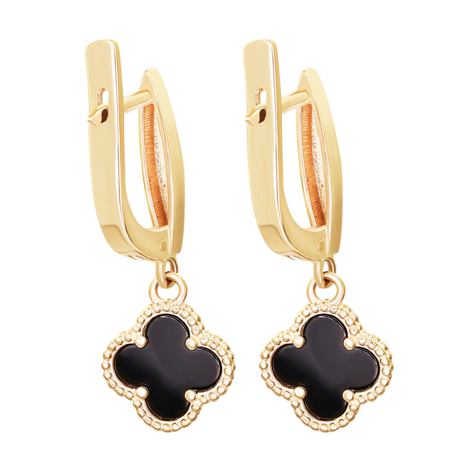 Сережки из желтого золота с подвесами "Клевер" с перламутром - 1866488
