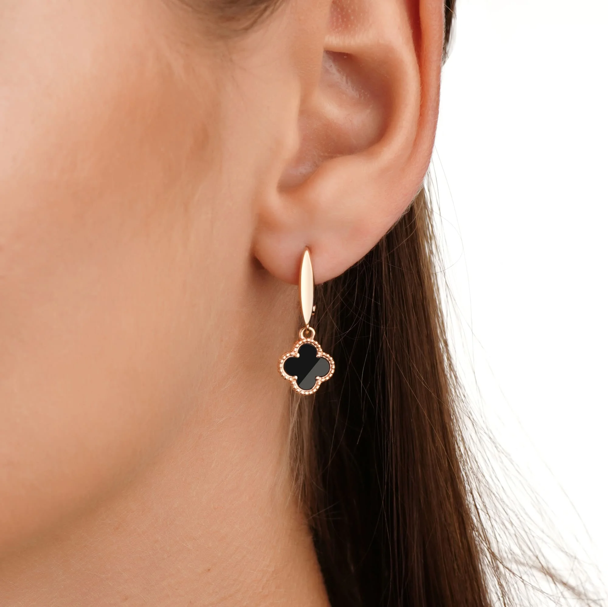 Экстравагантные сережки "Клевер" из красного золота с подвесами и эмалью - 1875178