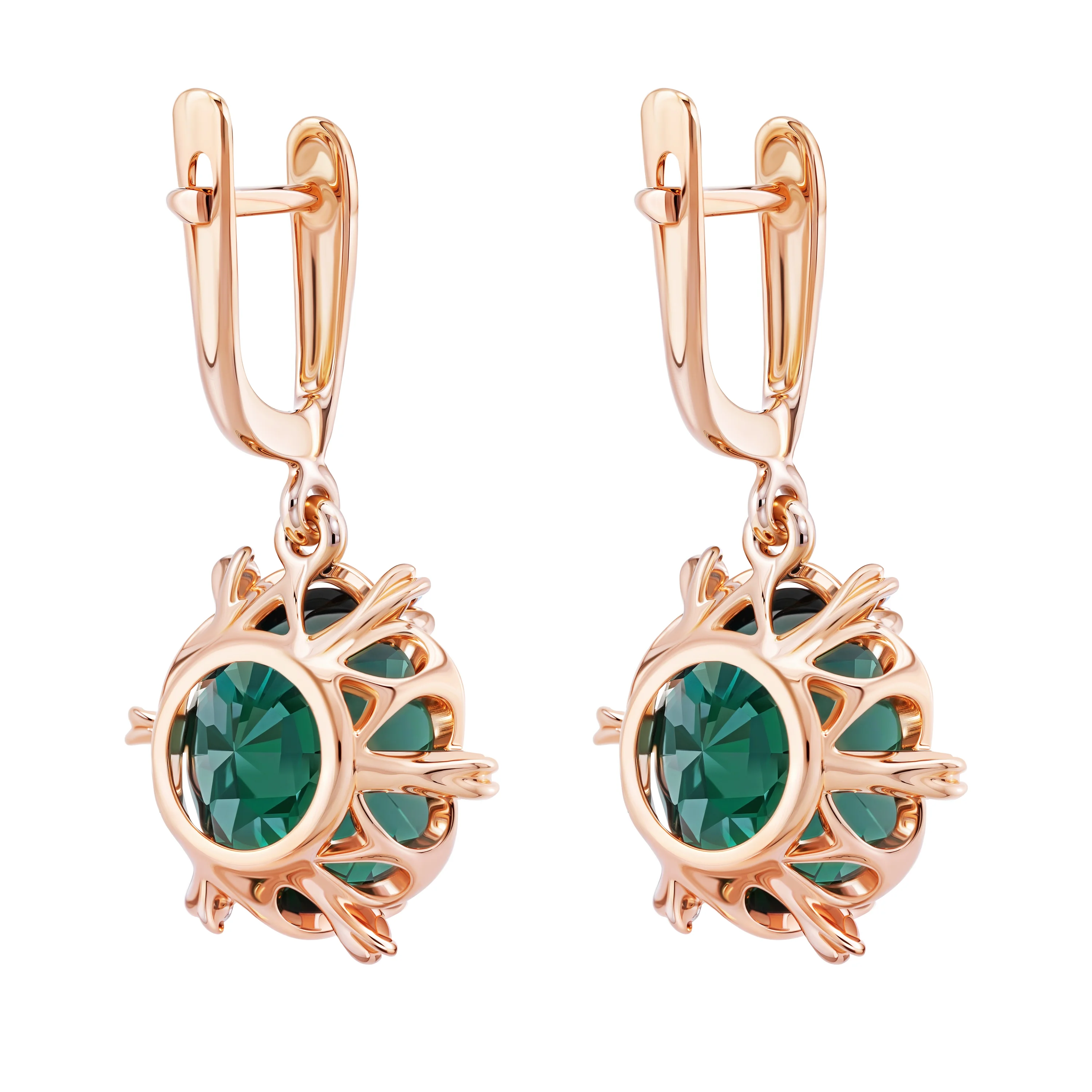 Серьги из красного золота с подвесом, кварцем и фианитами - 2086741