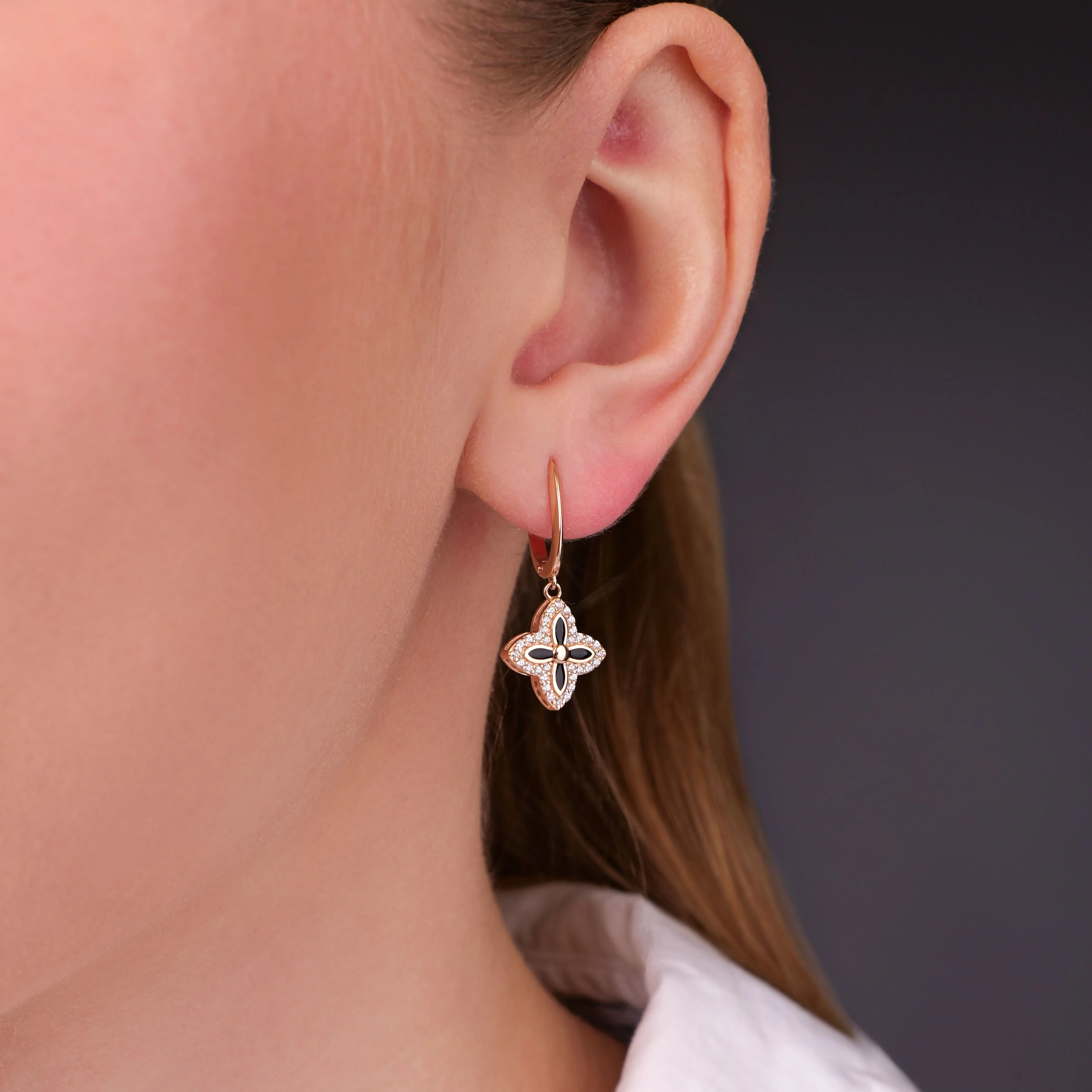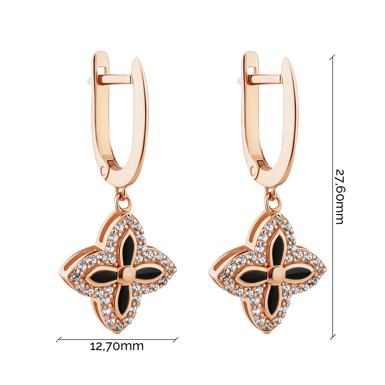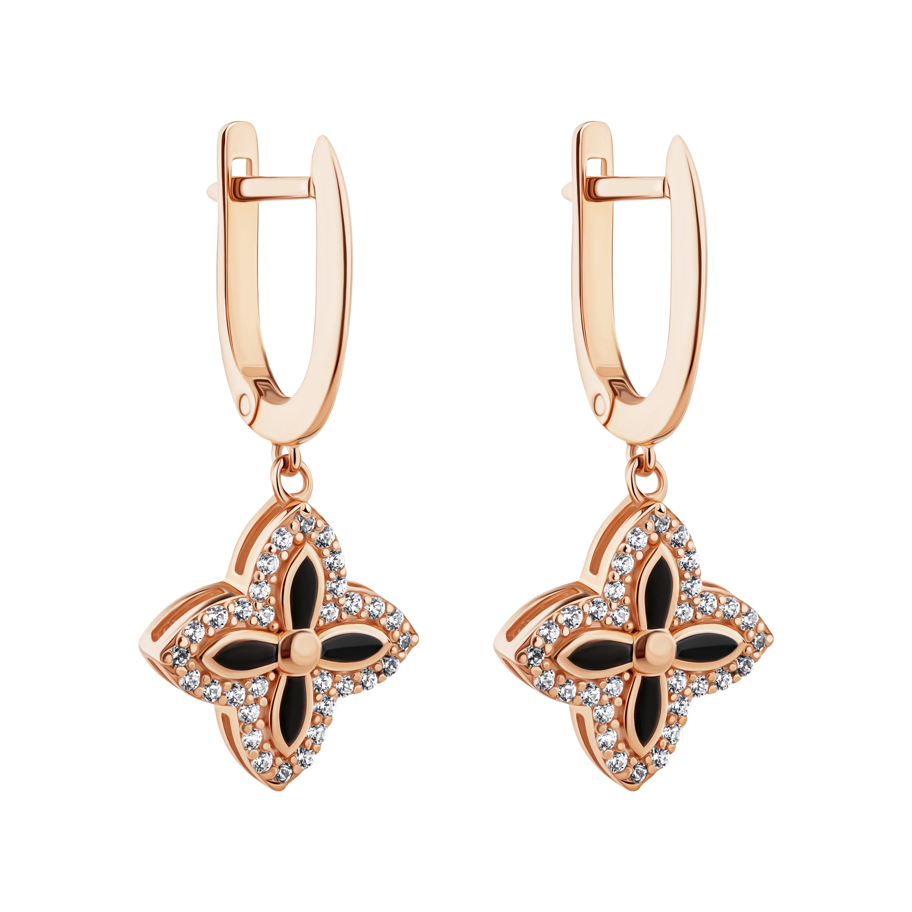 Серьги из красного золота с подвесом "Цветок" с эмалью и фианитами - 1987556