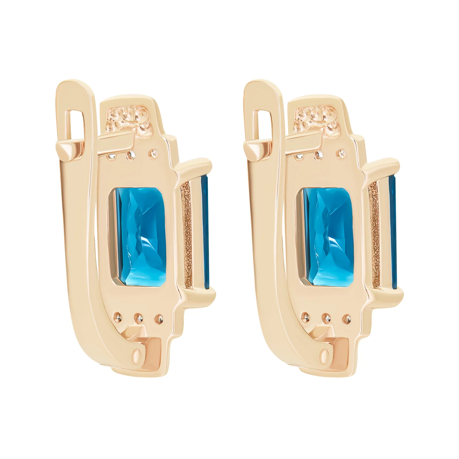 Сережки-гвоздики с топазом лондон и фианитами из красного золота - 1525469
