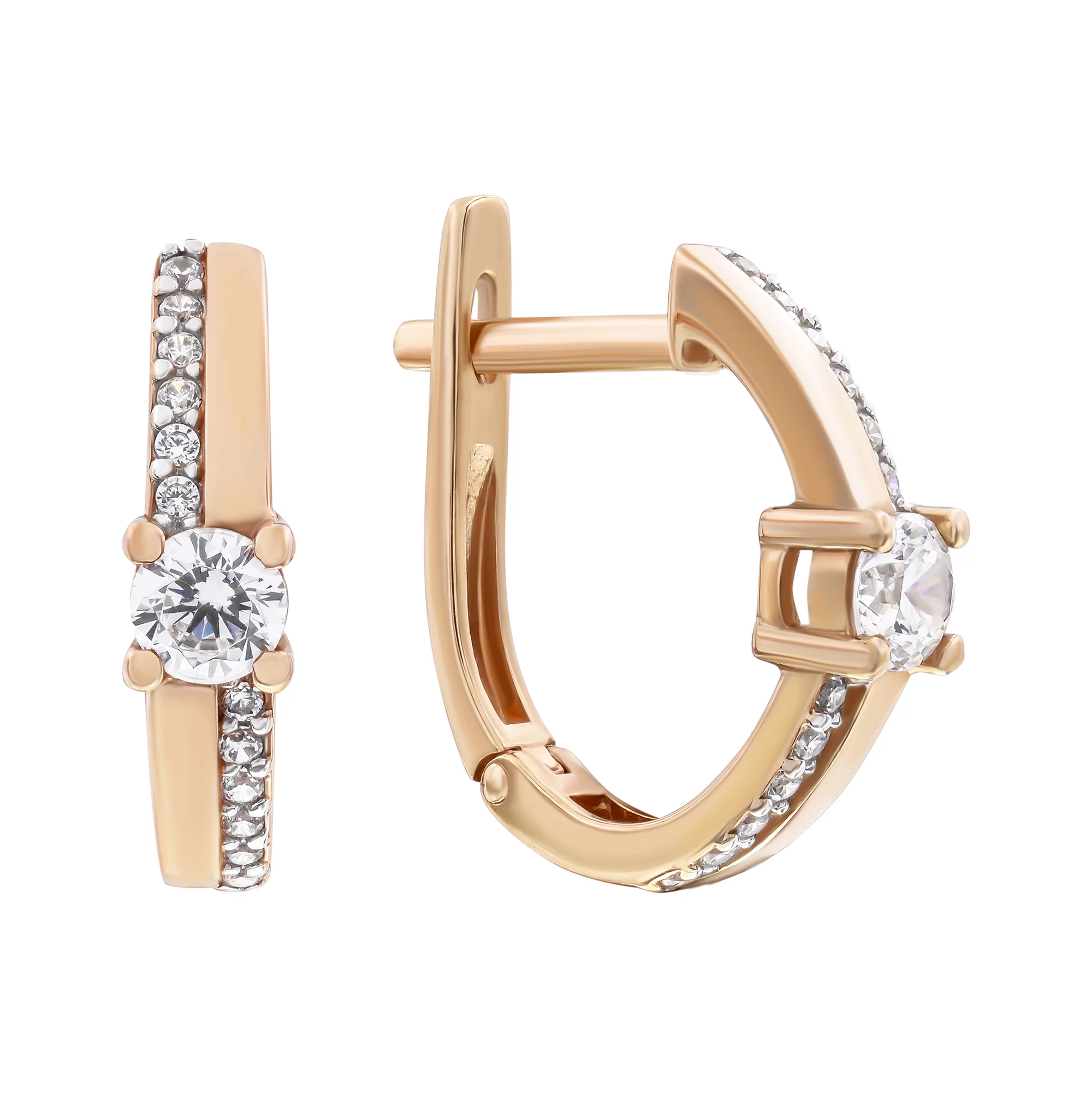 Серьги из красного золота с фианитами - 1389201